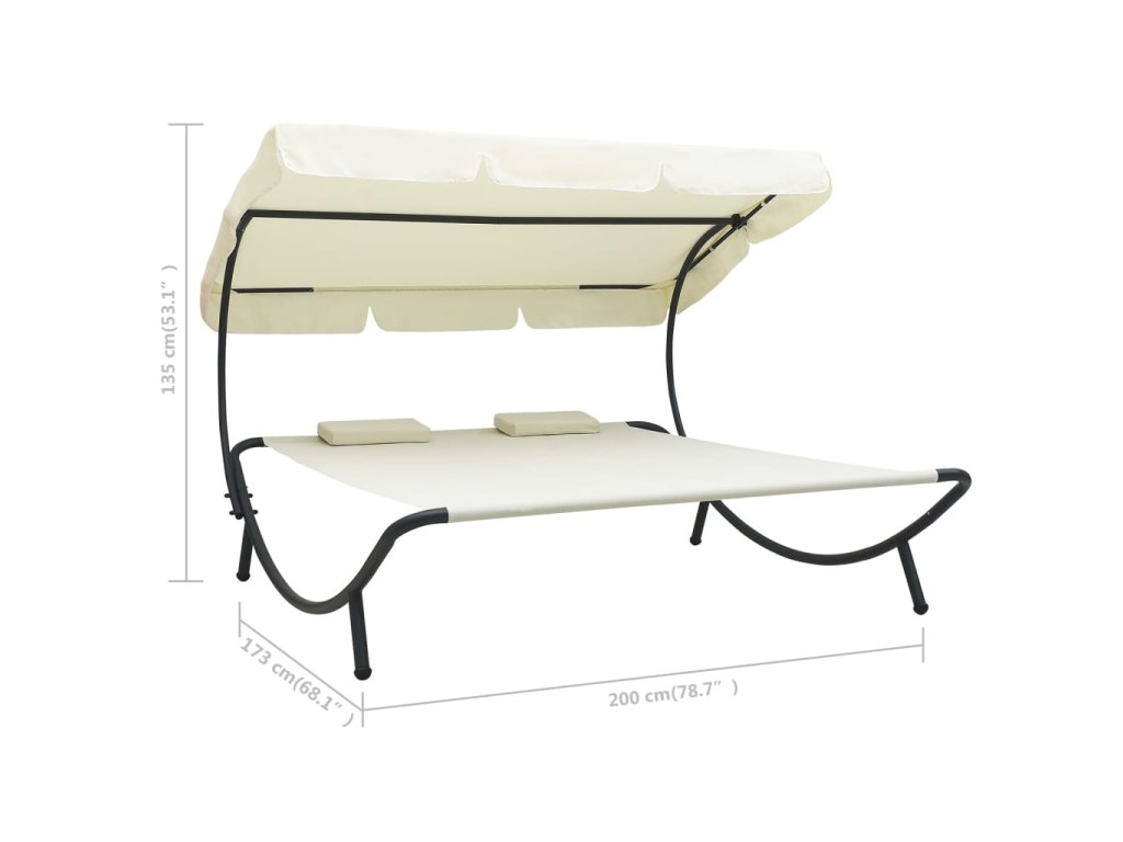 Táto záhradná posteľ pre dvoch má 2 vankúše a veľký baldachýn a predstavuje pútavý doplnok do akýchkoľvek priestorov. Poskytne vám dokonalé miesto na relaxovanie alebo zábavu s rodinou v záhrade, na dvore, terase či na pláži.