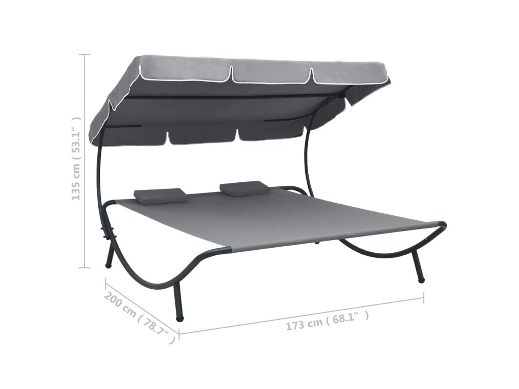 Táto záhradná posteľ pre dvoch má 2 vankúše a veľký baldachýn a predstavuje pútavý doplnok do akýchkoľvek priestorov. Poskytne vám dokonalé miesto na relaxovanie alebo zábavu s rodinou v záhrade, na dvore, terase či na pláži.