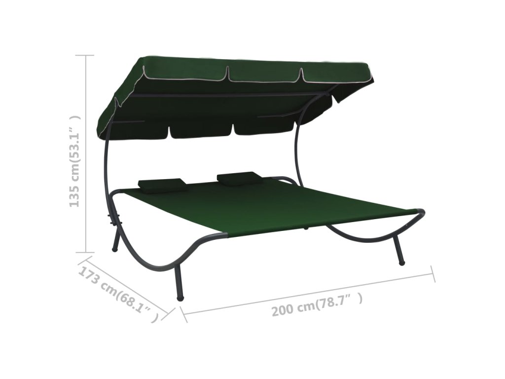 Táto záhradná posteľ pre dvoch má 2 vankúše a veľký baldachýn a predstavuje pútavý doplnok do akýchkoľvek priestorov. Poskytne vám dokonalé miesto na relaxovanie alebo zábavu s rodinou v záhrade, na dvore, terase či na pláži.