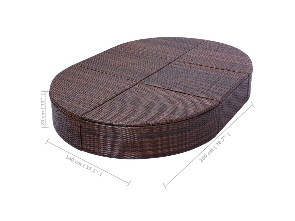 Oválna záhradná posteľ je vyrobená z PE ratanu, ktorý vodovzdorný a odolný voči poveternostným vplyvom, a tak je vhodná na celoročné používanie v exteriéri. Leňoška pre dvoch má pevný a trvácny oceľový rám s práškovou povrchovou úpravou. Dá sa na oboch stranách nastaviť do piatich polôh pre čo najväčšie pohodlie.