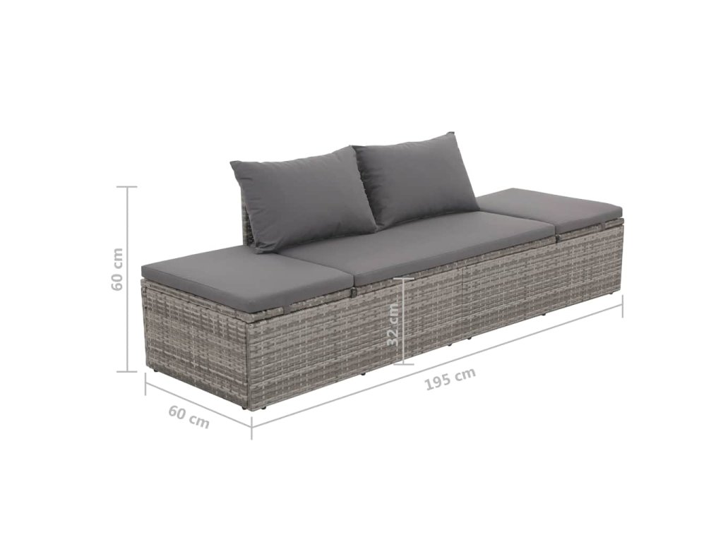 Naše lehátko je vyrobené z PE ratanu, ktorý je ľahký, vodeodolný a jednoducho sa čistí. Je určené na vonkajšie použitie počas celého roku. Oceľový rám s práškovaným povrchom tiež prináša stabilitu a zaručuje vynikajúcu trvácnosť. Obe strany lôžka sa dajú zdvihnúť a nastaviť do rôznych polôh pre najpohodlnejšie sedenie alebo ležanie. Vďaka hrubému polstrovaniu a odnímateľným podsedákom a vankúšom s penovou výplňou vám poskytne dokonalé pohodlie. Polyesterové obliečky vankúšov sa dajú jednoducho udržiavať, zvliecť a oprať. Lôžko sa ľahko montuje. Balenie obsahuje 1 lehátko, 1 veľký podsedák a 2 vankúše.