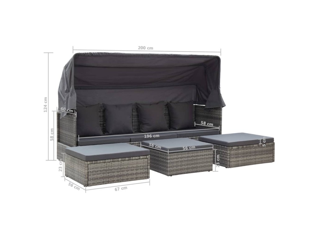 - Materiál: PE ratan, látka (100 % polyester), oceľ