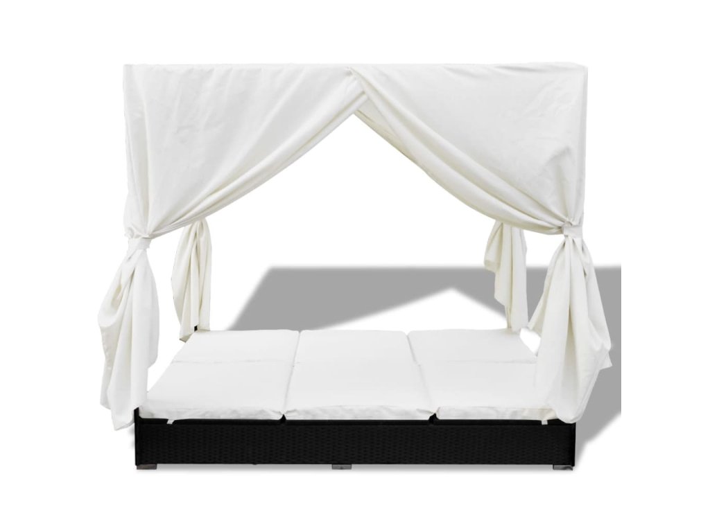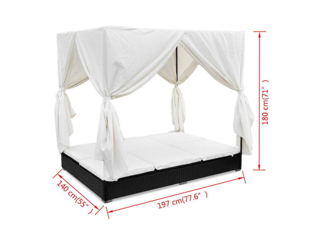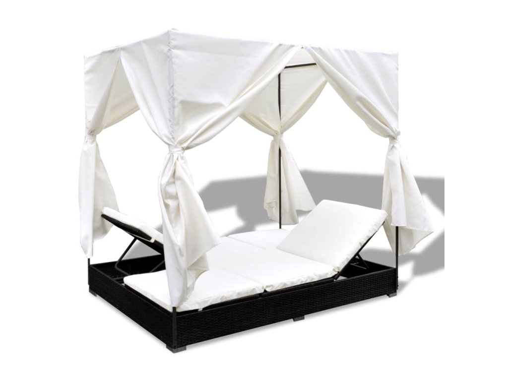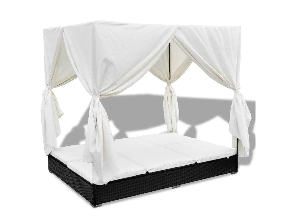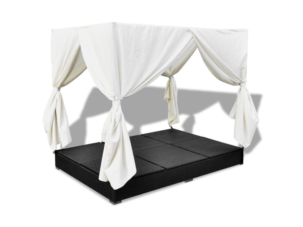 Vďaka oceľovým rámom s práškovou povrchovou úpravou je ležadlo veľmi stabilné a trvácne. Záhradné ležadlo z PE ratanu sa ľahko čistí a pohodlné hrubé a mäkké podložky sú vyrobené z vodovzdorného polyesteru. Poťahy na zips sú odnímateľné a dajú sa oprať. Dvojmiestna leňoška sa dá na obidvoch stranách nastaviť do 7 rôznych polôh, a tak poskytuje optimálny komfort pri sedení a ležaní. Závesy, ktoré visia zo štyroch stĺpikov rámu postele dodávajú ležadlu luxusný vzhľad, postarajú sa o to, aby sa dnu nedostal nepríjemný hmyz a zároveň vám poskytnú potrebný tieň a súkromie. Záves môžete zložiť dole a odložiť, ak si chcete naplno vychutnávať slnečné lúče. Záhradné ležadlo sa jednoducho montuje.