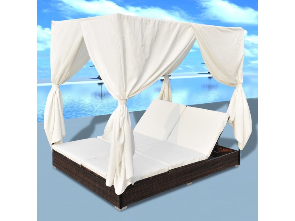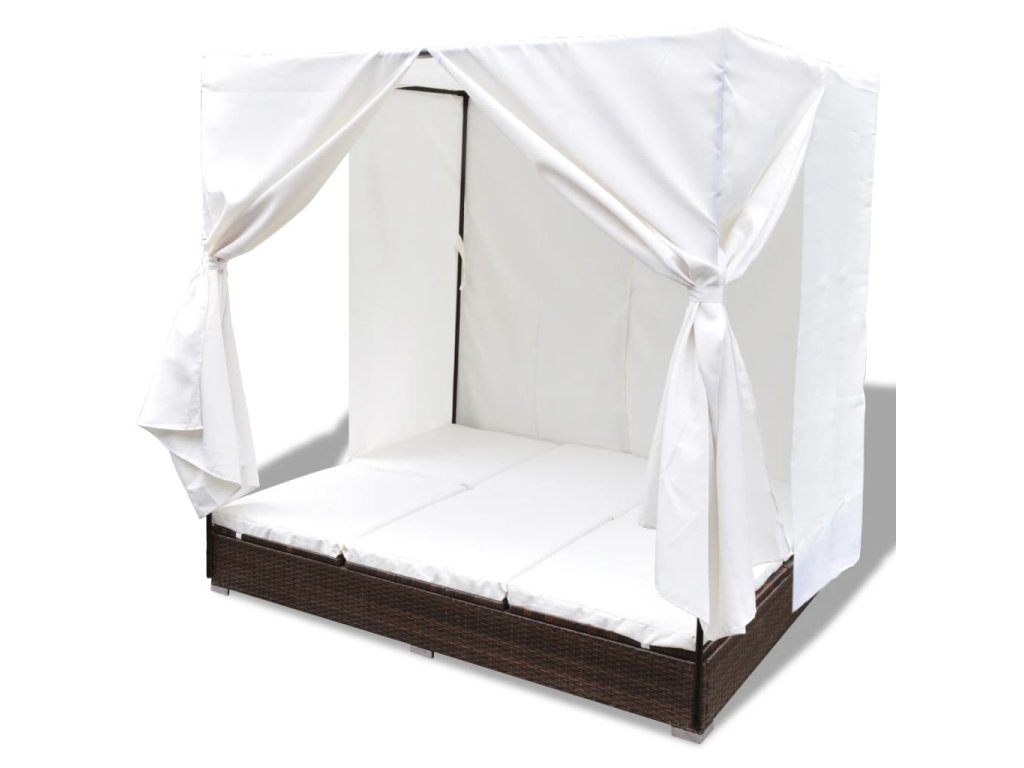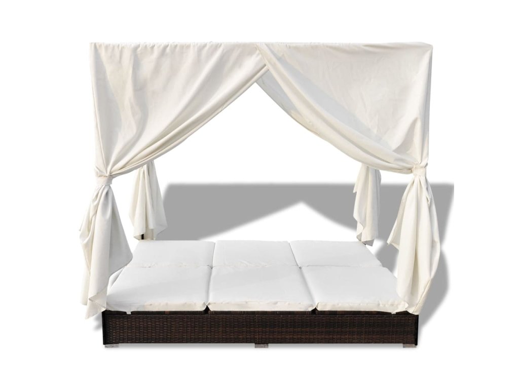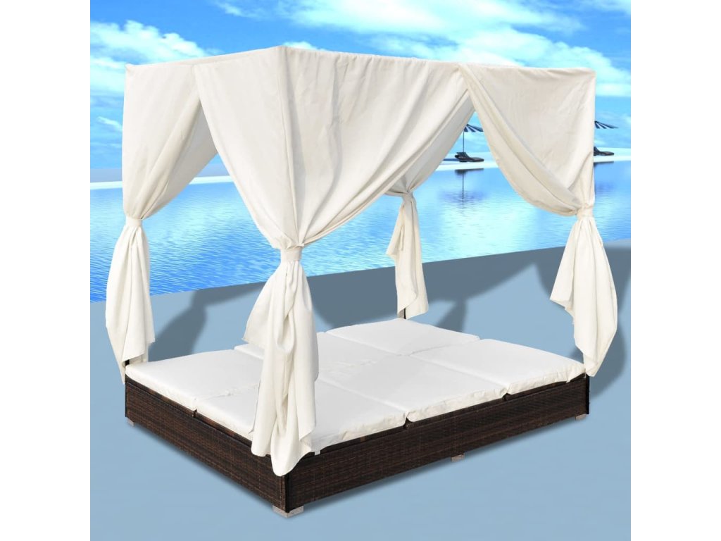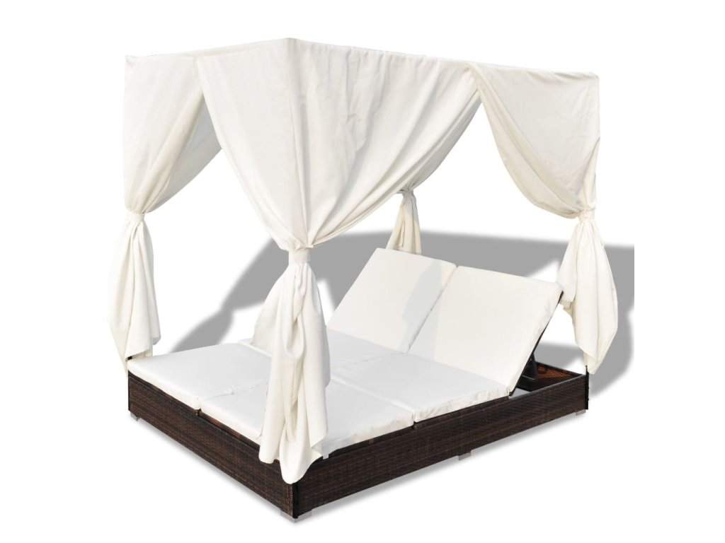 Vďaka oceľovým rámom s práškovou povrchovou úpravou je ležadlo veľmi stabilné a trvácne. Záhradné ležadlo z PE ratanu sa ľahko čistí a pohodlné hrubé a mäkké podložky sú vyrobené z vodovzdorného polyesteru. Poťahy na zips sú odnímateľné a dajú sa oprať. Dvojmiestna leňoška sa dá na obidvoch stranách nastaviť do 7 rôznych polôh, a tak poskytuje optimálny komfort pri sedení a ležaní. Závesy, ktoré visia zo štyroch stĺpikov rámu postele dodávajú ležadlu luxusný vzhľad, postarajú sa o to, aby sa dnu nedostal nepríjemný hmyz a zároveň vám poskytnú potrebný tieň a súkromie. Záves môžete zložiť dole a odložiť, ak si chcete naplno vychutnávať slnečné lúče. Záhradné ležadlo sa jednoducho montuje.