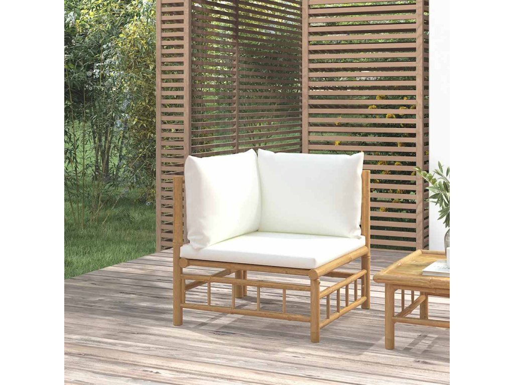 Vychutnajte si šálku kávy alebo čaju v príjemnom počasí vo vašom vonkajšom priestore s touto elegantnou bambusovou záhradnou rohovou súpravou!