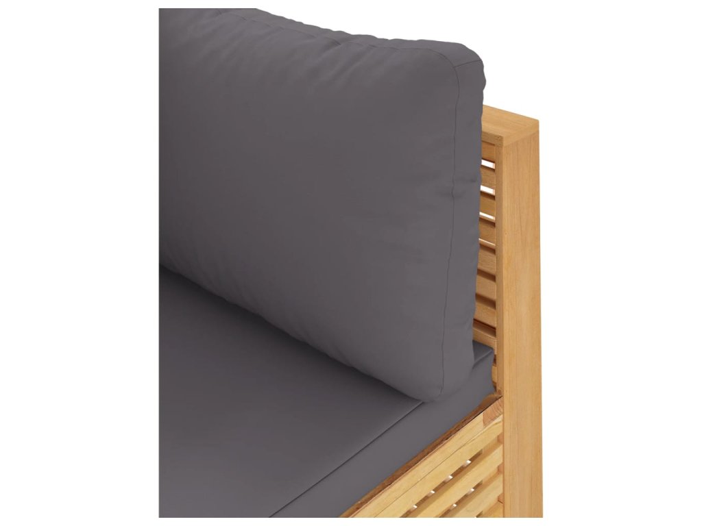 - Materiál: Masívne teakové drevo s povrchovou úpravou na báze vody, látka (100% polyester)
