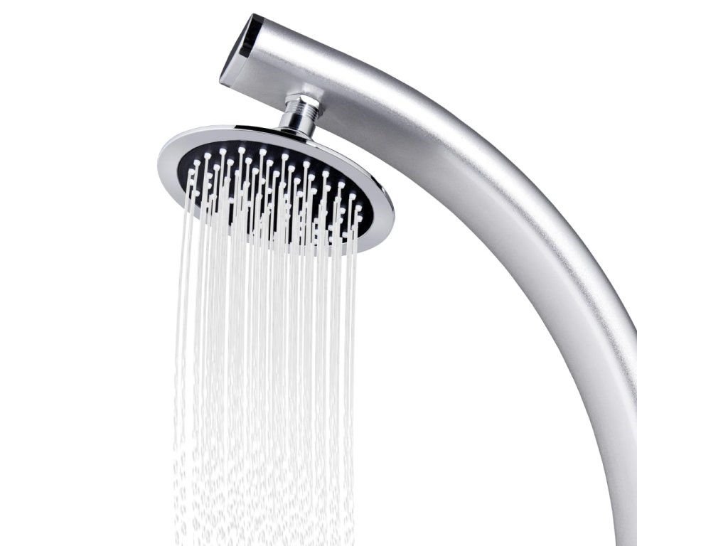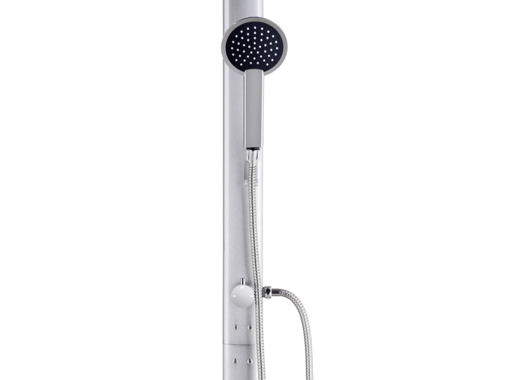 Táto vonkajšia sprcha je vyrobená z hliníka, vďaka čomu je odolná voči poveternostným vplyvom. Sprchovací systém má hlavovú sprchu a ručnú sprchu, aby vyhovoval vašim potrebám pri záhradníctve, polievaní a sprchovaní. Ručná sprcha je vybavená flexibilnou hadicou s dvojitým uzáverom a s dĺžkou 1,5 m. Je tiež vybavená mosadzným držiakom, na ktorý môžete umiestniť aj uterák.