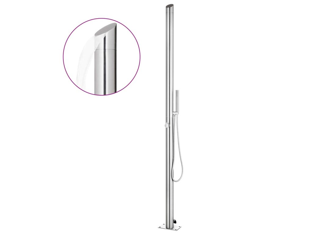 Táto vonkajšia sprcha je vyrobená z nehrdzavejúcej ocele, vďaka čomu je odolná voči poveternostným vplyvom. Sprchovací systém má hlavovú sprchu s vodopádom a ručnú sprchu, aby vyhovoval vašim potrebám pri záhradníctve, polievaní a sprchovaní. Ručná sprcha je vybavená dvojitou flexibilnou hadicou s dĺžkou 1,5 m. Je tiež vybavená mosadzným držiakom.