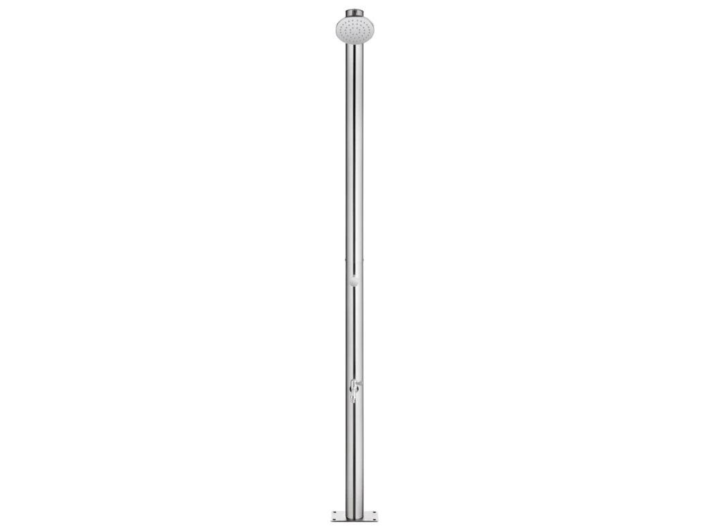 Vonkajšia sprcha je vyrobená z nehrdzavejúcej ocele, vďaka čomu je odolná voči poveternostným vplyvom. Sprchovací systém má hornú sprchu a batériu na umývanie nôh, aby vyhovovala vašim potrebám na záhrade, pri polievaní a rýchlom sprchovaní.