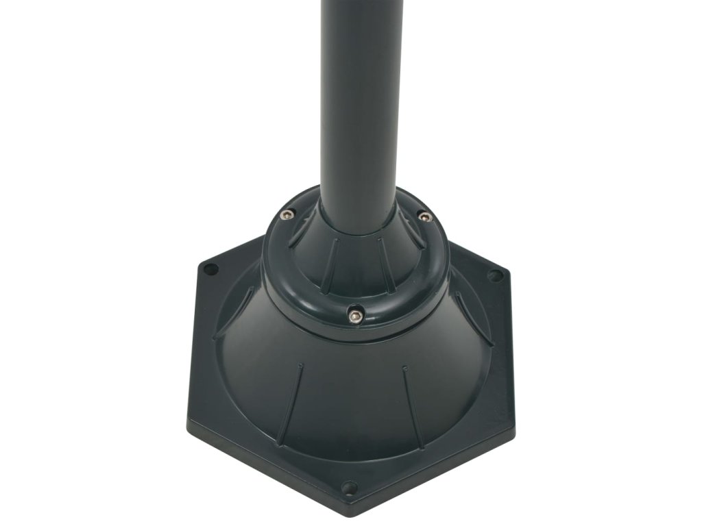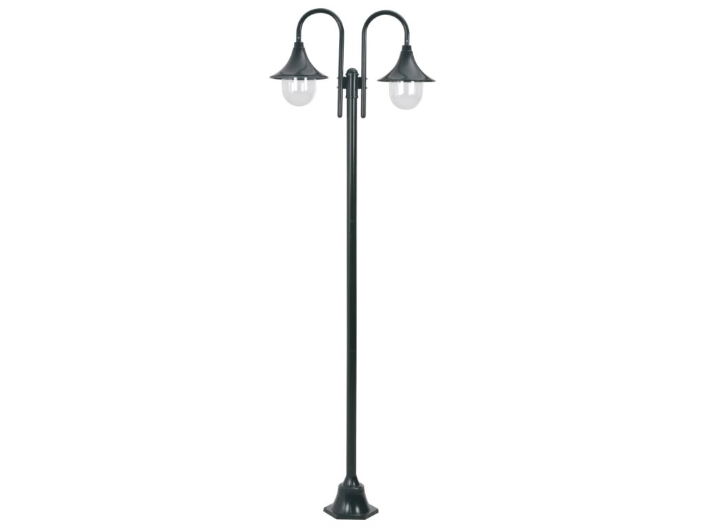 Kvalitná vonkajšia stojaca lampa je vyrobená z odolného hliníka s PVC tienidlom, čo zaručí dlhoročné používanie. Vonkajšia záhradná lampa má 2 zásuvky E27. Upozorňujeme, že žiarovky nie sú súčasťou balenia.