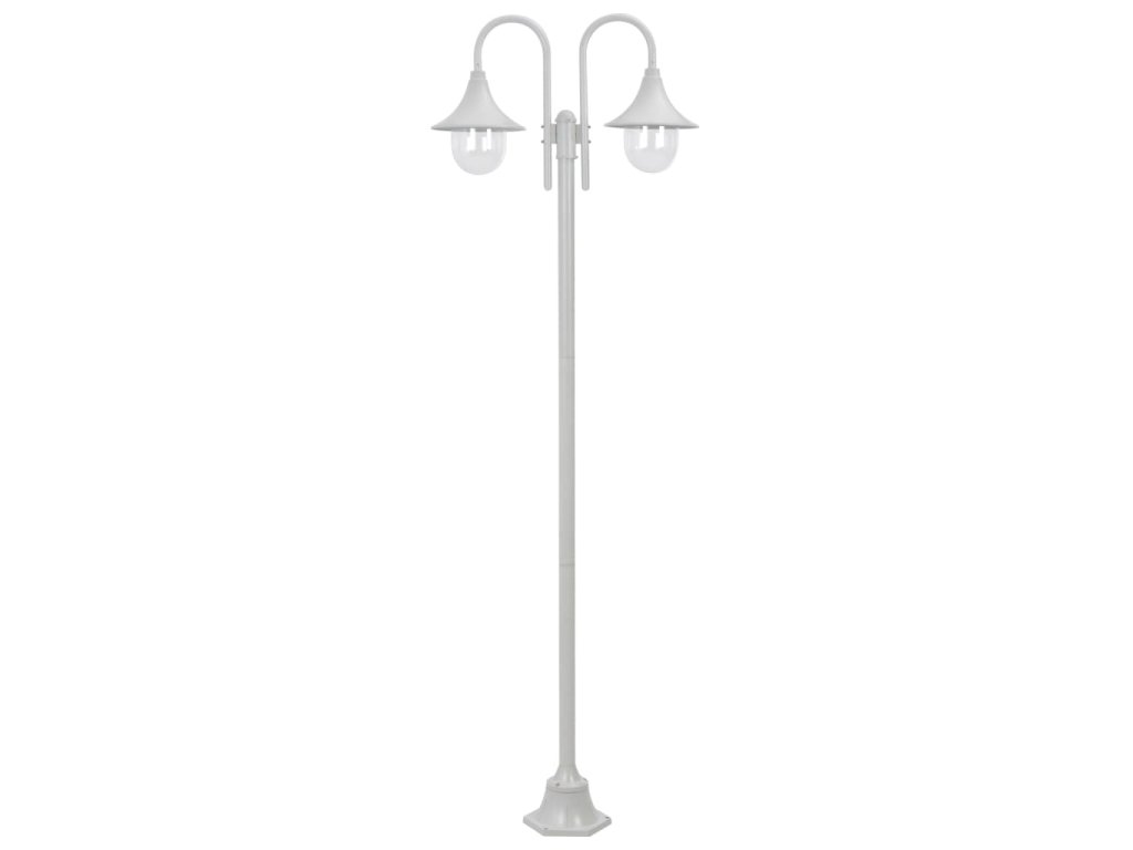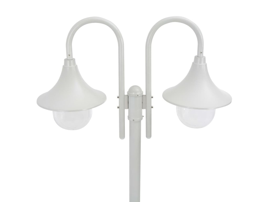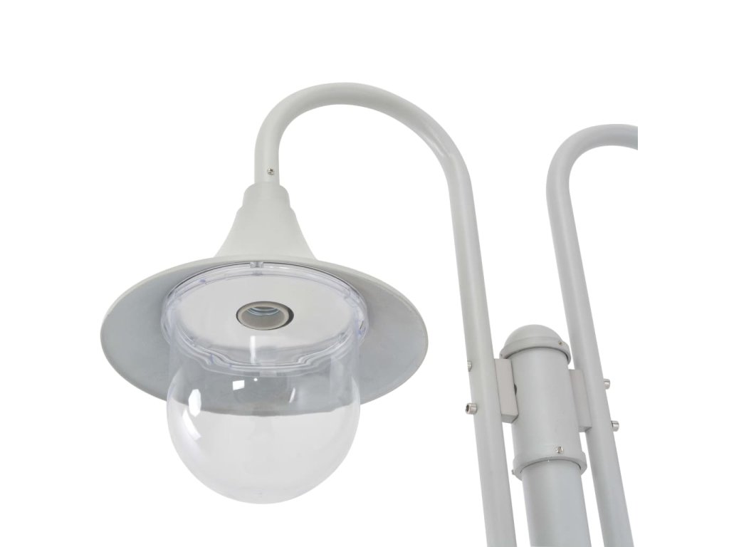 Kvalitná vonkajšia stojaca lampa je vyrobená z odolného hliníka s PVC tienidlom, čo zaručí dlhoročné používanie. Vonkajšia záhradná lampa má 2 zásuvky E27. Upozorňujeme, že žiarovky nie sú súčasťou balenia.