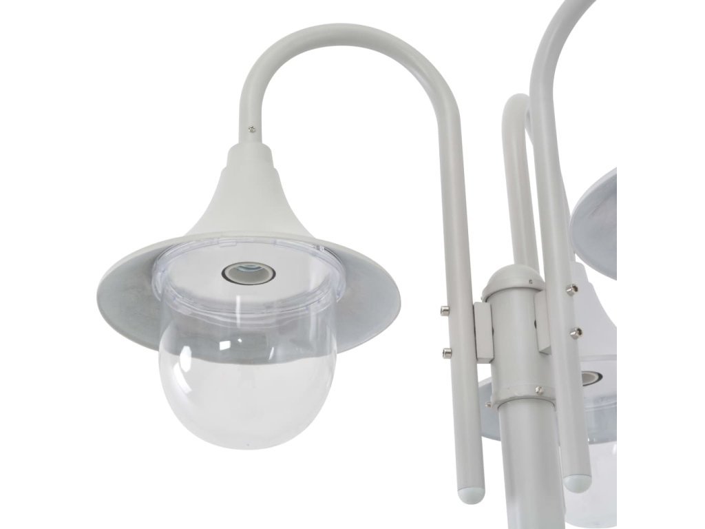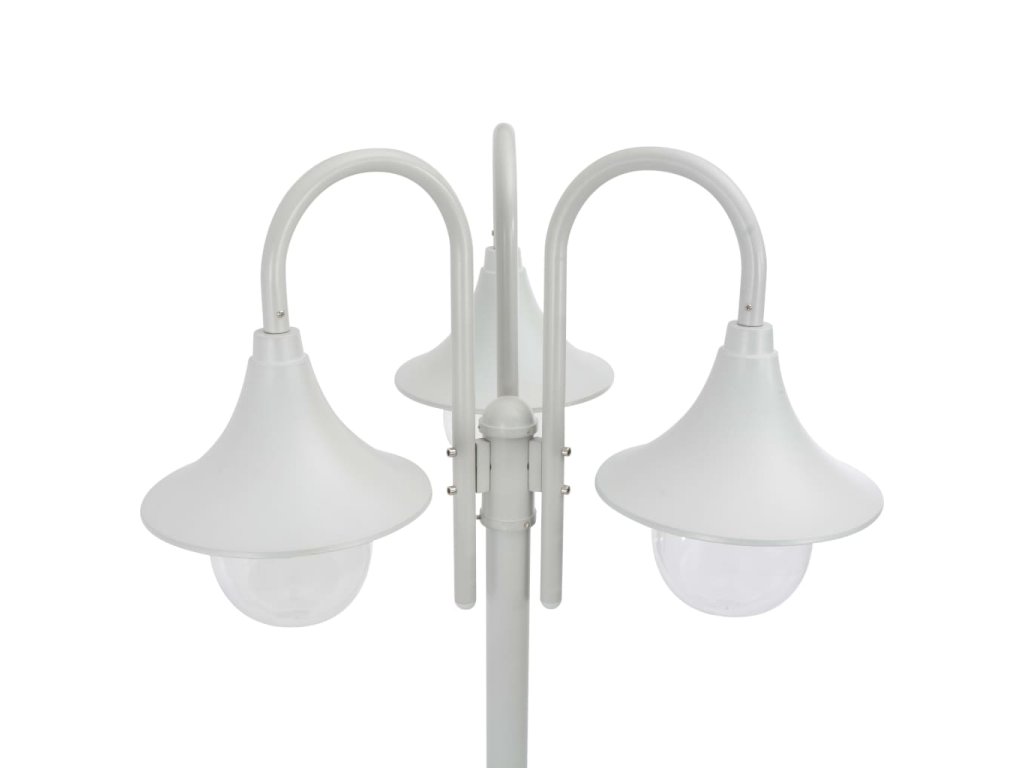 Kvalitná vonkajšia stojaca lampa je vyrobená z odolného hliníka s PVC tienidlom, čo zaručí dlhoročné používania. Vonkajšia záhradná lampa má 3 objímky typu E27. Upozorňujeme, že žiarovky nie sú súčasťou balenia.