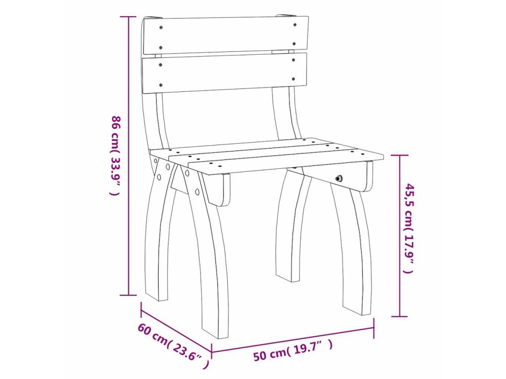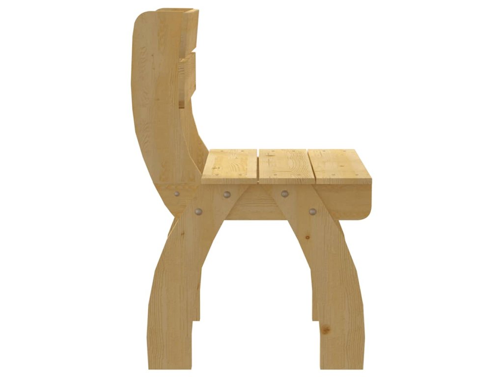 Drevená záhradná stolička je vyrobená z borovicového dreva so zelenou impregnáciou, vďaka čomu je veľmi pevná, trvácna a odolná voči hnilobe.