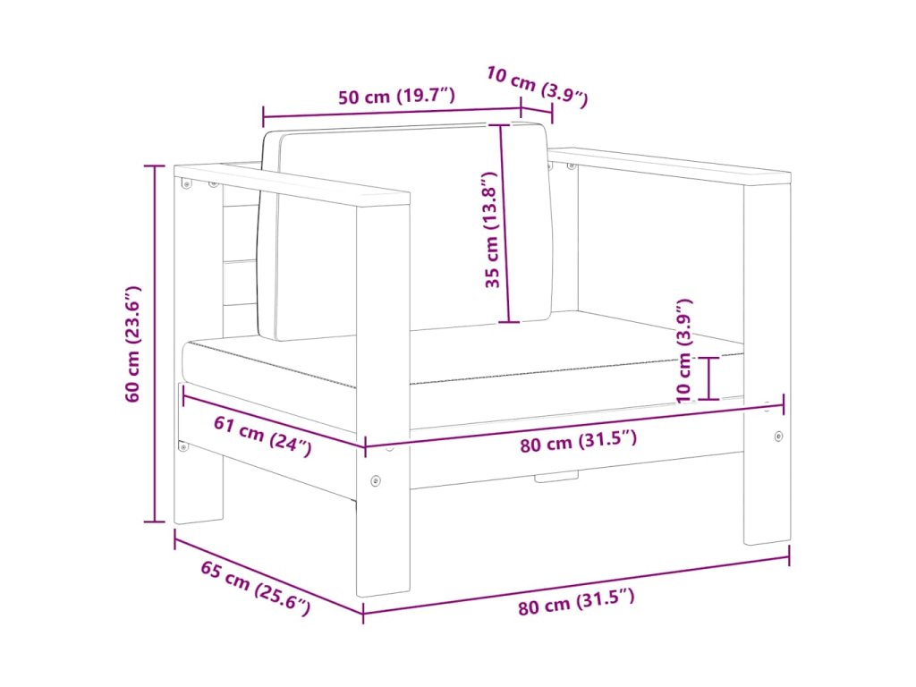 - Materiál: Akáciový masív s teakovým vzhľadom, látka (100% polyester)