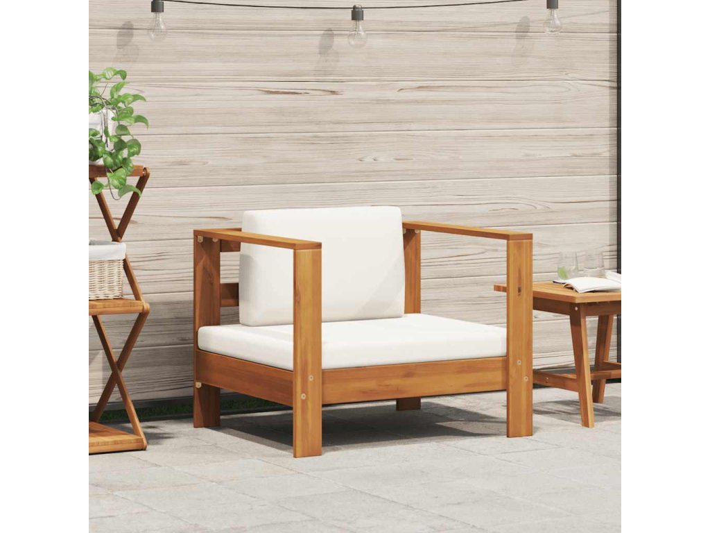 Kreslo s lakťovou opierkou je vyrobené z akáciového masívu s tíkovým vzhľadom, vďaka čomu je trvácna a odolná voči poveternostným vplyvom. Vďaka povrchu s olejovou úpravou sa ľahko čistí vlhkou handričkou. Polstrovaná podložka na sedadlo a operadlo poskytuje vysoké pohodlie pre váš čas oddychu.