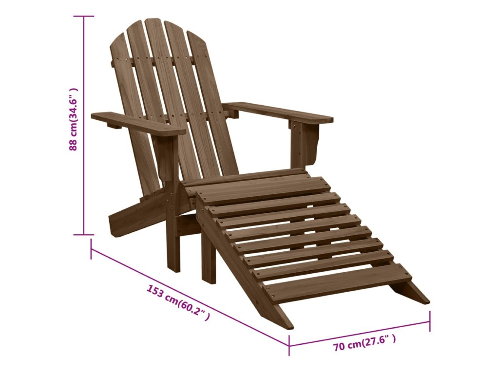Odpočiňte si na našom kresle s podnožkou vo vintage štýle, ktoré je vyrobené z dreveného masívu. Vďaka svojmu elegantnému a nadčasovému dizajnu predstavuje praktický a klasický doplnok do vašich vonkajších priestorov.