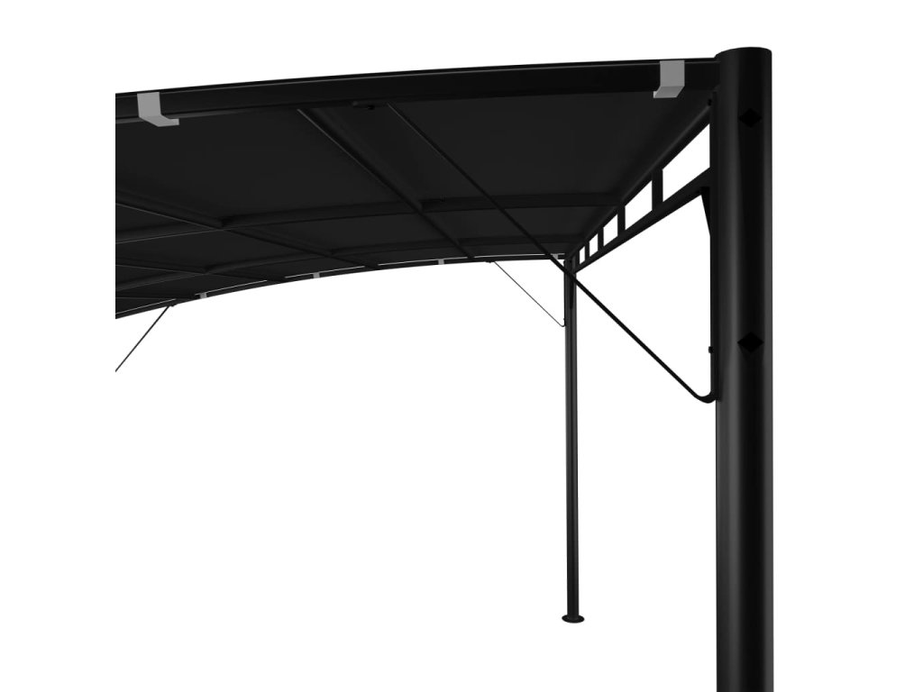 Vďaka robustnej kovovej konštrukcii a oceli s práškovou povrchovou úpravou je rám trvácny a stabilný. Látková strieška poskytuje ochranu pred horúcim slnkom, a tak vám umožní vychutnávať si pobyt na čerstvom vzduchu v príjemnom tieni. Tento elegantný a praktický prístrešok sa dá jednoducho zmontovať.