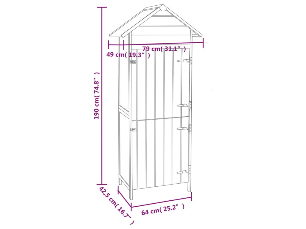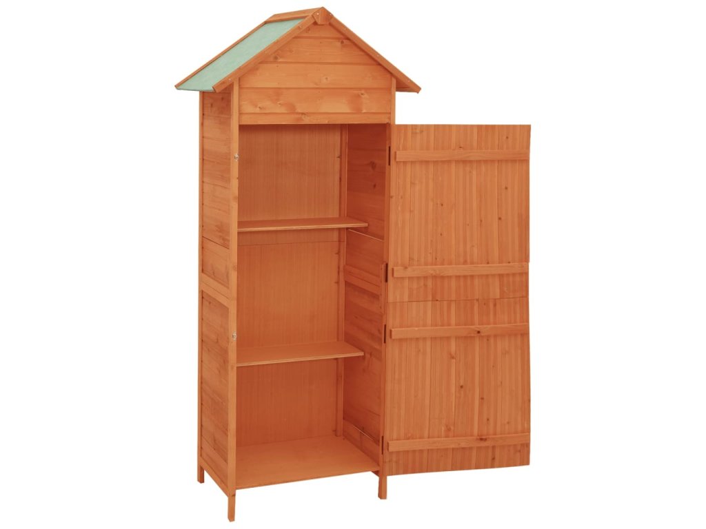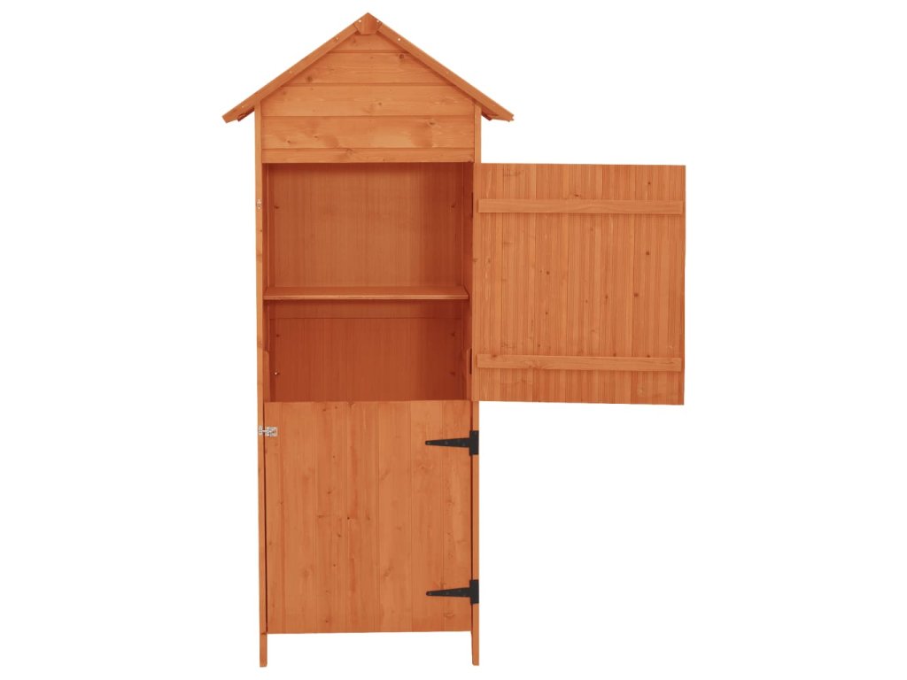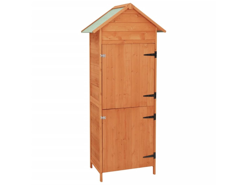 Drevená skrinka má kompaktný dizajn a elegantný vzhľad a bude sa hodiť do akýchkoľvek vonkajších priestorov. Vysokokvalitný prístrešok poskytuje dostatok úložného priestoru na rôzne druhy náradia a ďalšieho vybavenia.
