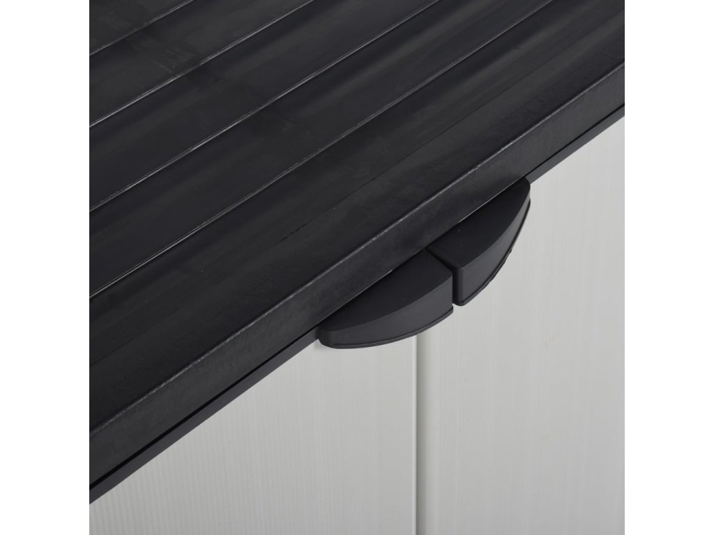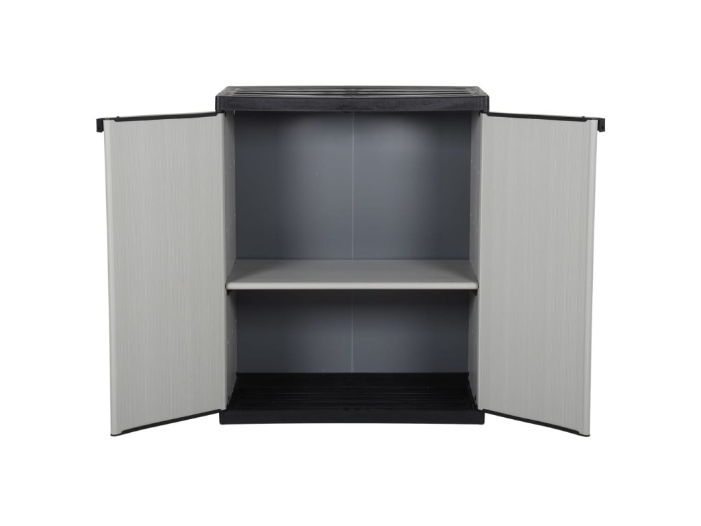Táto záhradná úložná skrinka sa so svojím nadčasovým dizajnom hodí ku každému zariadeniu. Je ideálna pre použitie v záhrade, na terase a podobne.