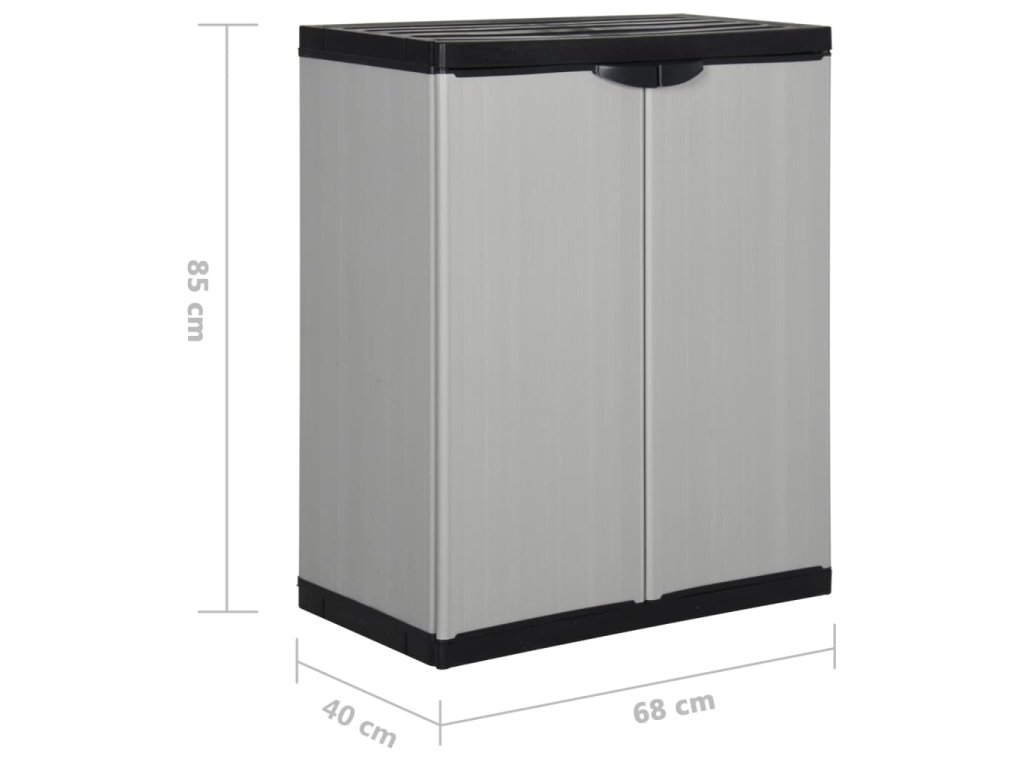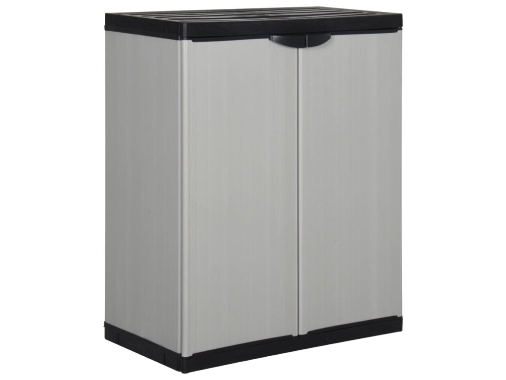 Táto vonkajšia skrinka je vyrobená z PVC a PP (polypropylénu), vďaka čomu je pevná, odolná a ľahko sa čistí. Táto plastová skrinka má dostatok úložného priestoru, aby ste mali svoje veci usporiadané a na dosah ruky. Záhradná skrinka sa dá pre väčšiu bezpečnosť uzamknúť visiacim zámkom (zámok nie je súčasťou balenia). Skriňa na náradie má kompaktný dizajn a môžete ju využiť v obmedzenom priestore.