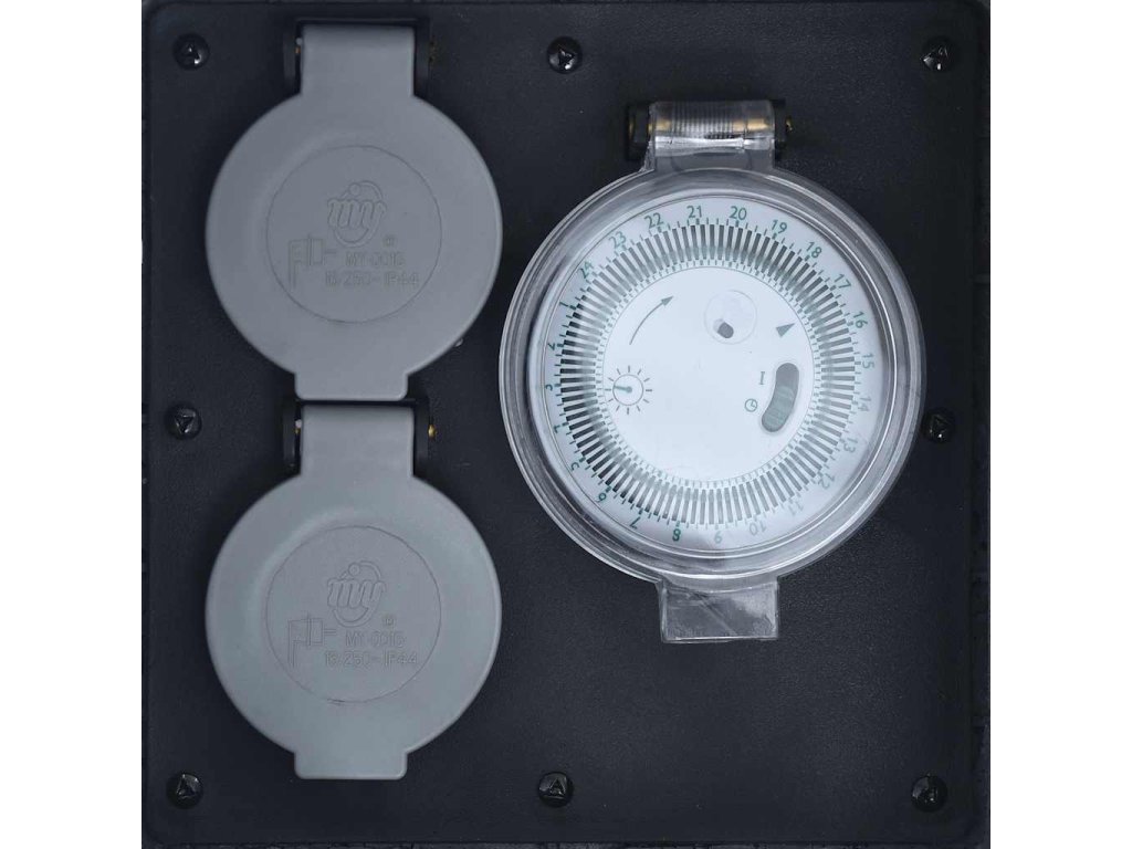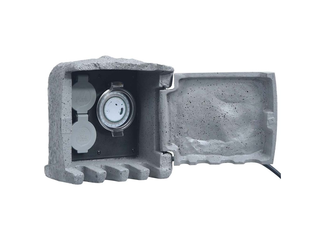 Má dve zásuvky a mechanický časovač ukrytý v kryte z umelého kameňa zo živice. Mechanický časovač automaticky vypne elektrické spotrebiče. Magnetické dvere a ochranné pružinové kryty sú veľmi pohodlné.