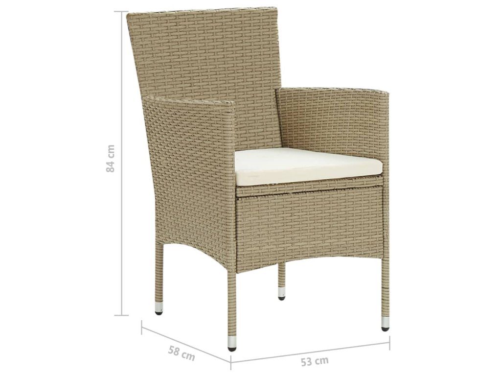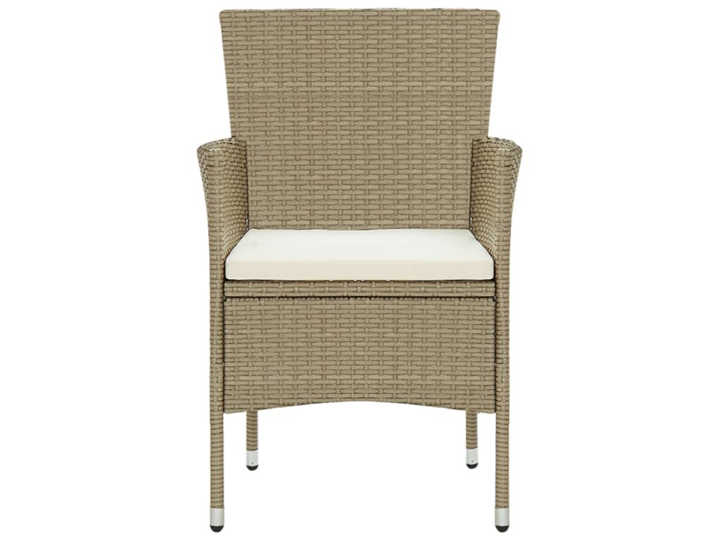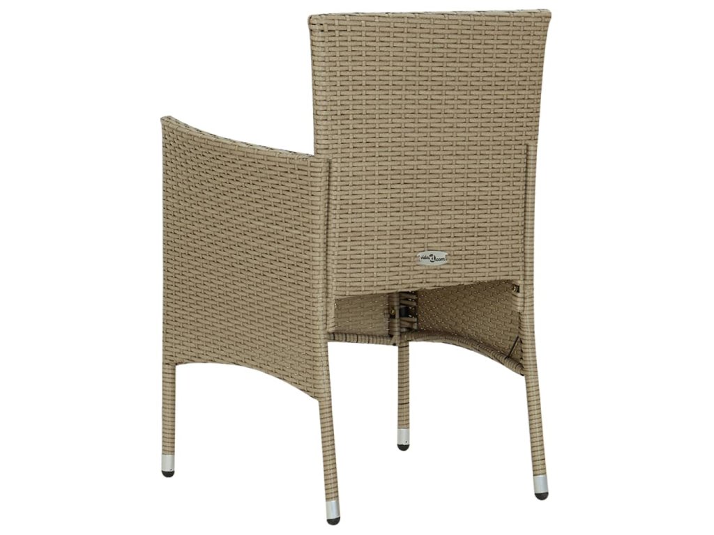 Táto súprava stoličiek zaujme v akomkoľvek prostredí. Stoličky majú robustný oceľový rám s ručne tkaným PE ratanom. Sú odolné voči hrdzi a plesniam, a poskytnú vám roky kvalitného odpočinku. Záhradná stolička je navrhnutá so zakriveným operadlom a lakťovou opierkou, a má ergonomický tvar pre maximálne pohodlie. Vankúš ponúka dodatočnú oporu počas sedenia.