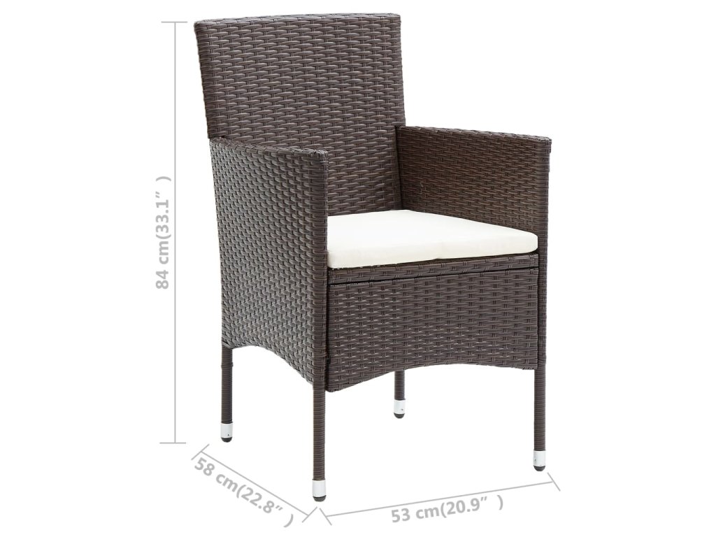 Táto súprava záhradných stoličiek zaujme v akomkoľvek prostredí. Stoličky majú robustný oceľový rám s ručne tkaným PE ratanom. Sú odolné voči hrdzi a plesniam, a poskytnú vám roky kvalitného odpočinku. Vonkajšia stolička je navrhnutá so zakriveným operadlom a lakťovou opierkou, a má ergonomický tvar pre maximálne pohodlie. Vankúš ponúka dodatočnú oporu počas sedenia.