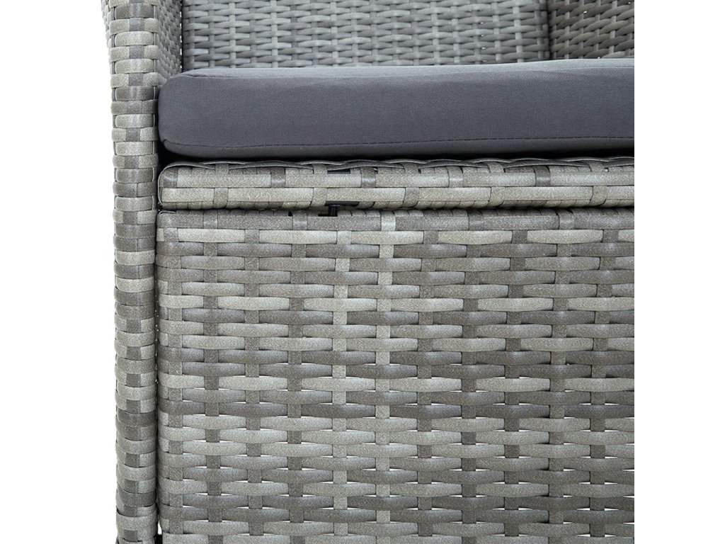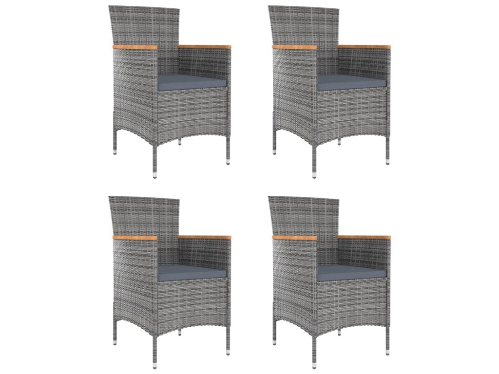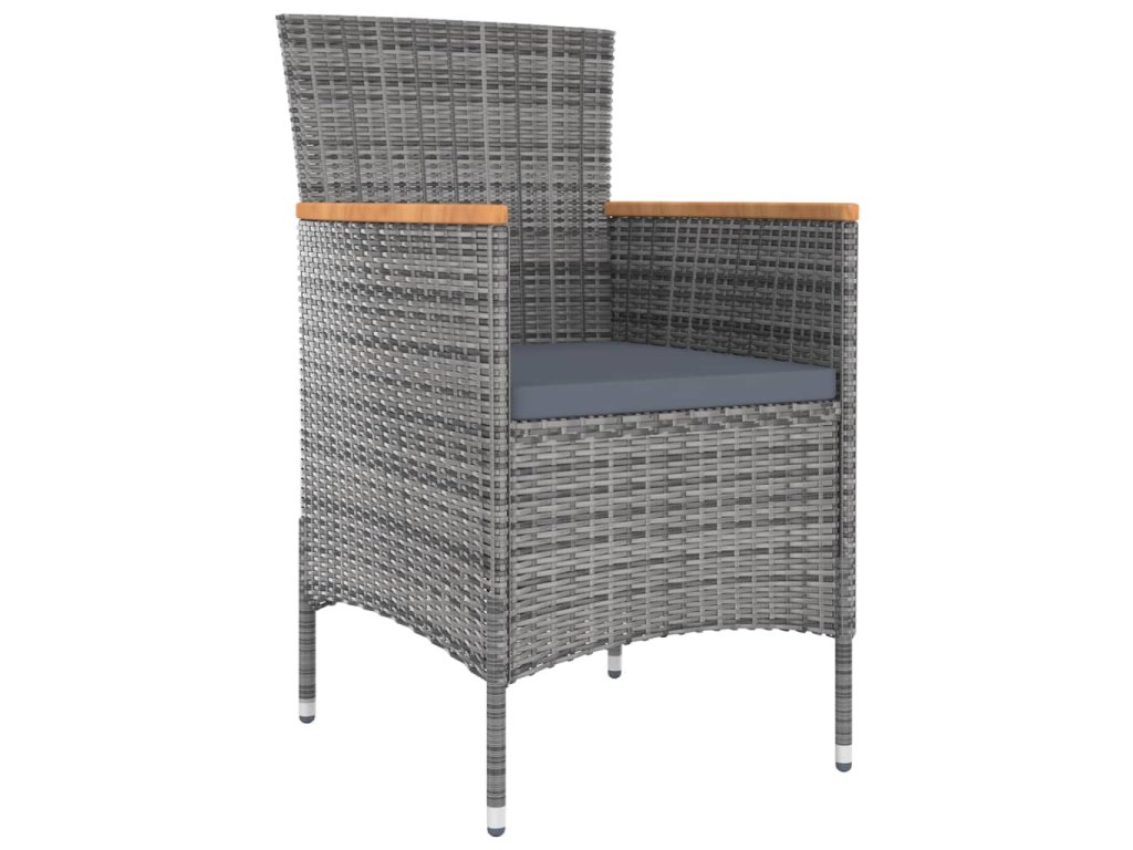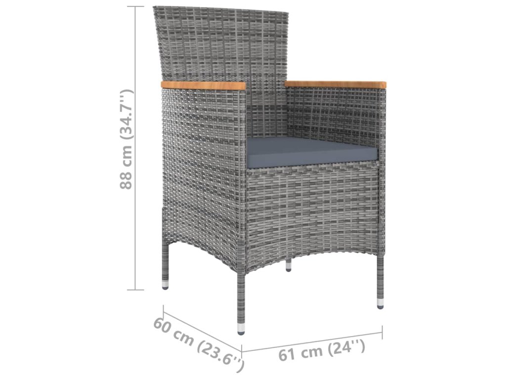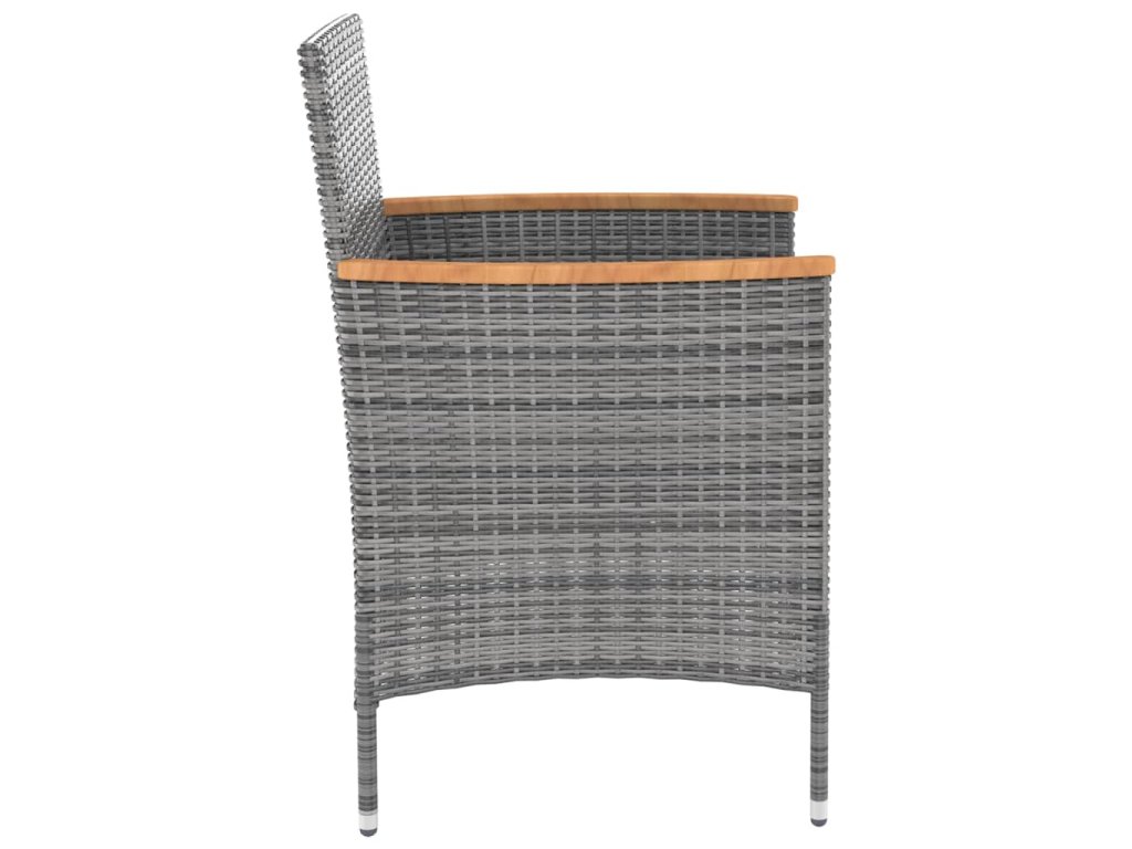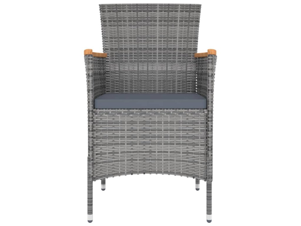 Vonkajšie kreslo s oceľovým rámom s práškovým nástrekom je obalené polyratanom a je robustné a ľahko sa čistí. Opierky na ruky sú vyrobené z masívneho akáciového dreva, tropického tvrdého dreva, ktoré dodáva stoličkám rustikálny vzhľad. Jedálenská stolička je navrhnutá so zakriveným operadlom a lakťovou opierkou, vďaka čomu má ergonomický tvar. Hustý a mäkký vankúš poskytne dokonalé pohodlie počas sedenia. Poťahy na vankúše so zipsom sa dajú ľahko zvliecť a vyprať. Vďaka ľahkej konštrukcii sa záhradné kreslo jednoducho presúva.