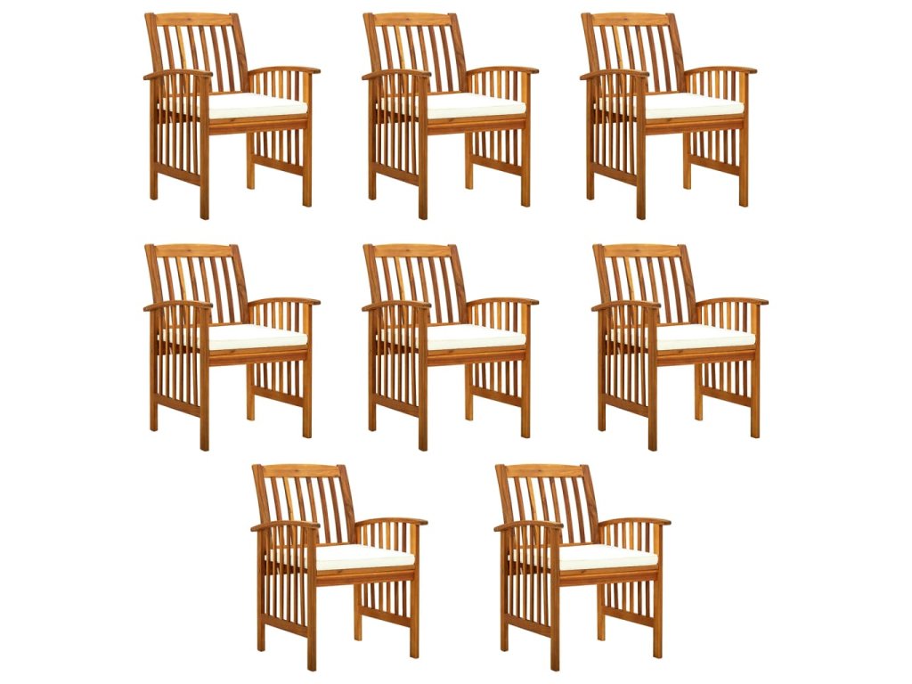 Tieto drevené záhradné jedálenské stoličky z masívneho akáciového dreva so sedákmi dodajú vášmu vonkajšiemu priestoru rustikálny nádych a poskytnú maximálne pohodlie počas stolovania.