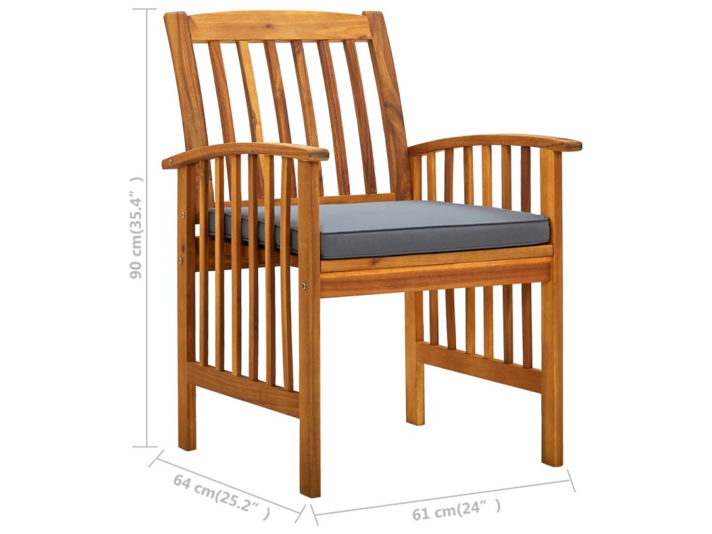 Tieto záhradné stoličky sú vyrobené z masívneho akáciového dreva, tropického tvrdého dreva, ktoré je odolné voči poveternostným vplyvom a trvácne. Povrch upravený olejom sa ľahko čistí vlhkou handričkou. Lamelový dizajn jej dáva rustikálne čaro. Navyše podložka poskytuje dodatočné pohodlie počas sedenia.