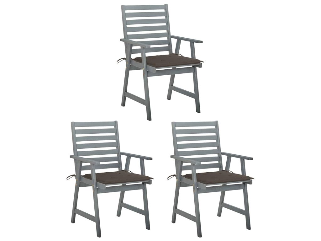 Tieto jedálenské stoličky sú vyrobené z masívneho akáciového dreva, tropického tvrdého dreva, ktoré je odolné voči poveternostným vplyvom a trvácne pre roky používania. Lamelový dizajn im dodáva rustikálne čaro. Navyše podložky poskytujú dodatočné pohodlie počas sedenia. Stoličky sú vyrobené zo 100% polyesteru, ktorý je upravený tak, aby bol vodeodolný. Každý vankúš má dve sady povrázkov, ktorými sa pevne pripevní k stoličke.