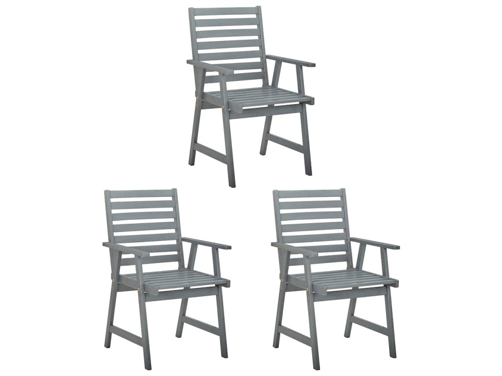 Tieto jedálenské stoličky sú vyrobené z masívneho akáciového dreva, tropického tvrdého dreva, ktoré je odolné voči poveternostným vplyvom a trvácne pre roky používania. Lamelový dizajn im dodáva rustikálne čaro. Navyše podložky poskytujú dodatočné pohodlie počas sedenia. Stoličky sú vyrobené zo 100% polyesteru, ktorý je upravený tak, aby bol vodeodolný. Každý vankúš má dve sady povrázkov, ktorými sa pevne pripevní k stoličke.