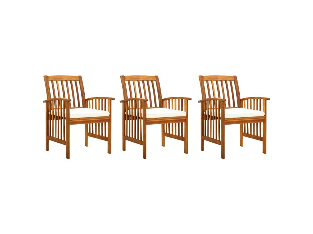 Tieto záhradné stoličky sú vyrobené z masívneho akáciového dreva, tropického tvrdého dreva, ktoré je odolné voči poveternostným vplyvom a trvácne. Povrch upravený olejom sa ľahko čistí vlhkou handričkou. Lamelový dizajn jej dáva rustikálne čaro. Navyše podložka poskytuje dodatočné pohodlie počas sedenia.