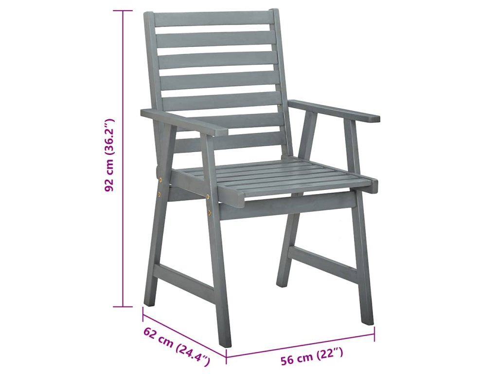 - Materiál stoličky: Akáciový masív so sivou ošúchanou povrchovou úpravou
