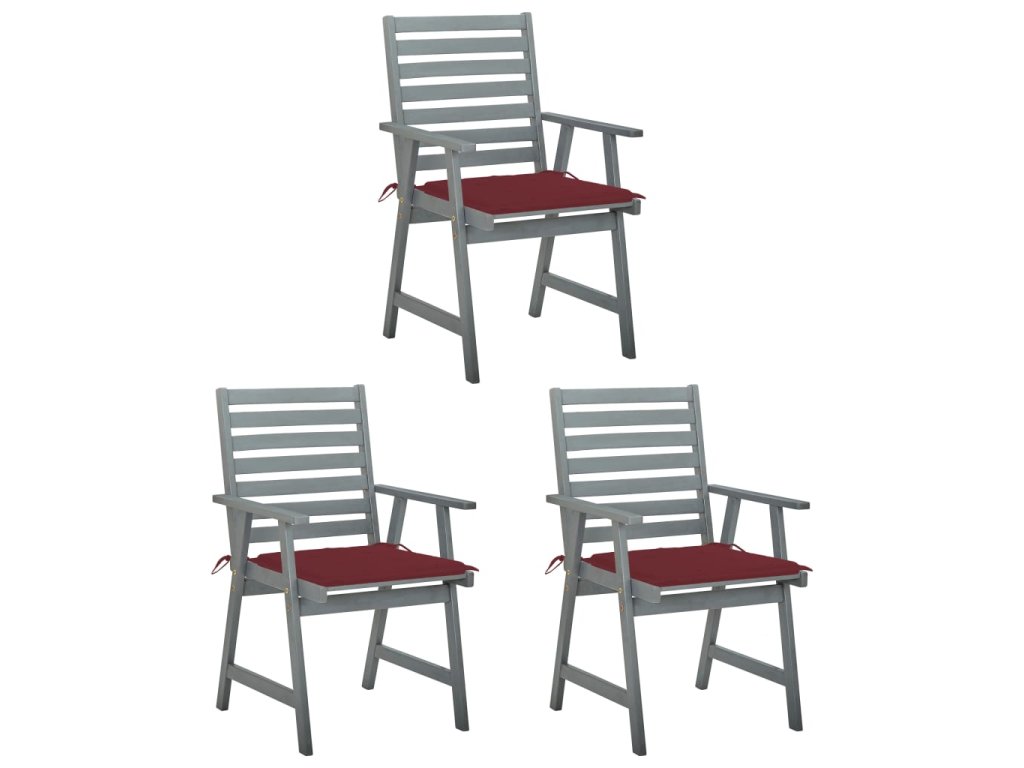 Tieto jedálenské stoličky sú vyrobené z masívneho akáciového dreva, tropického tvrdého dreva, ktoré je odolné voči poveternostným vplyvom a trvácne pre roky používania. Lamelový dizajn im dodáva rustikálne čaro. Navyše podložky poskytujú dodatočné pohodlie počas sedenia. Stoličky sú vyrobené zo 100% polyesteru, ktorý je upravený tak, aby bol vodeodolný. Každý vankúš má dve sady povrázkov, ktorými sa pevne pripevní k stoličke.