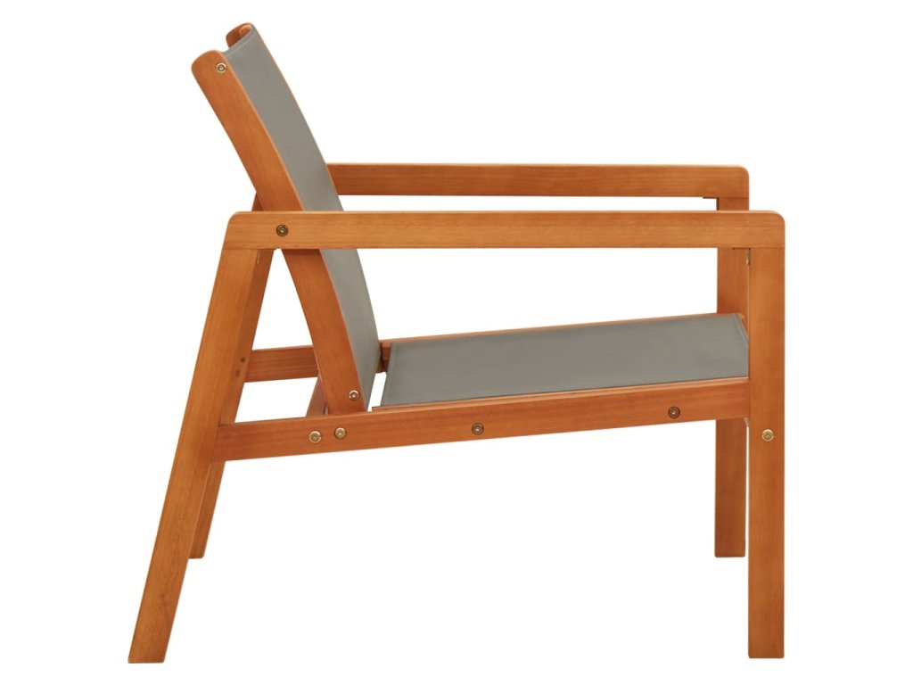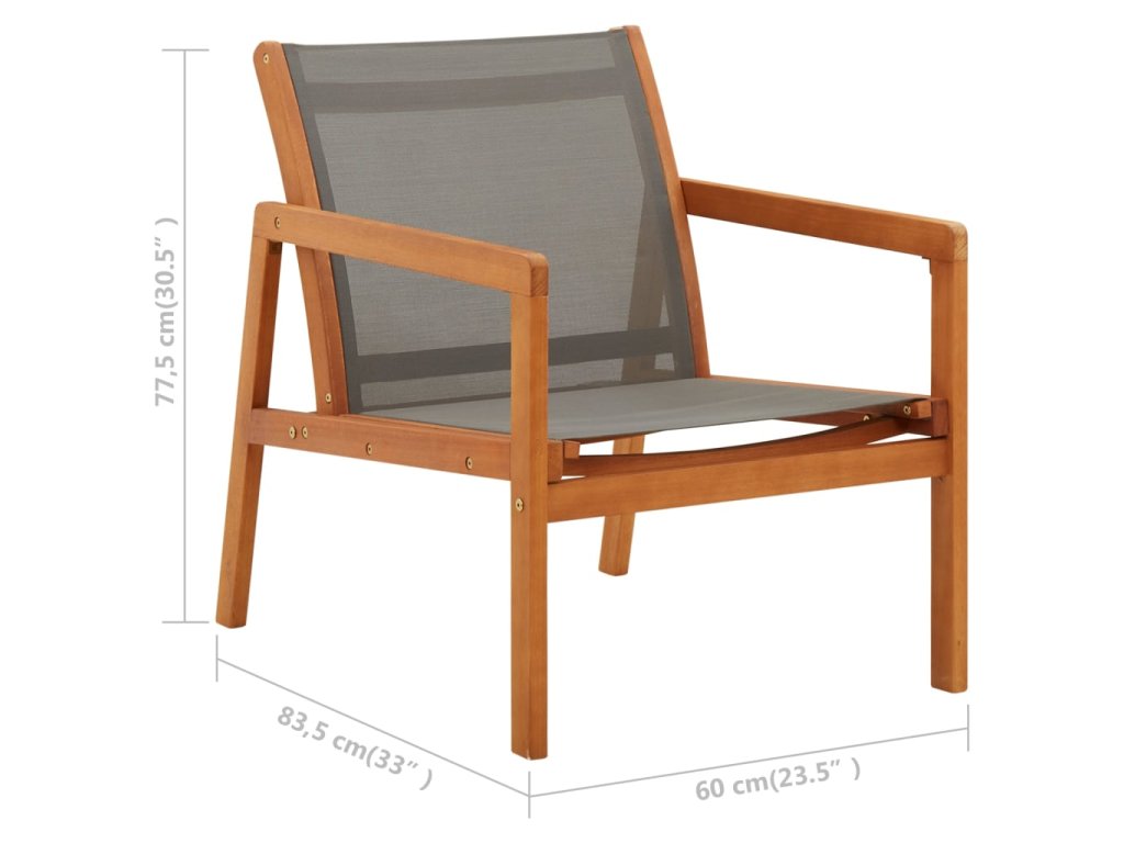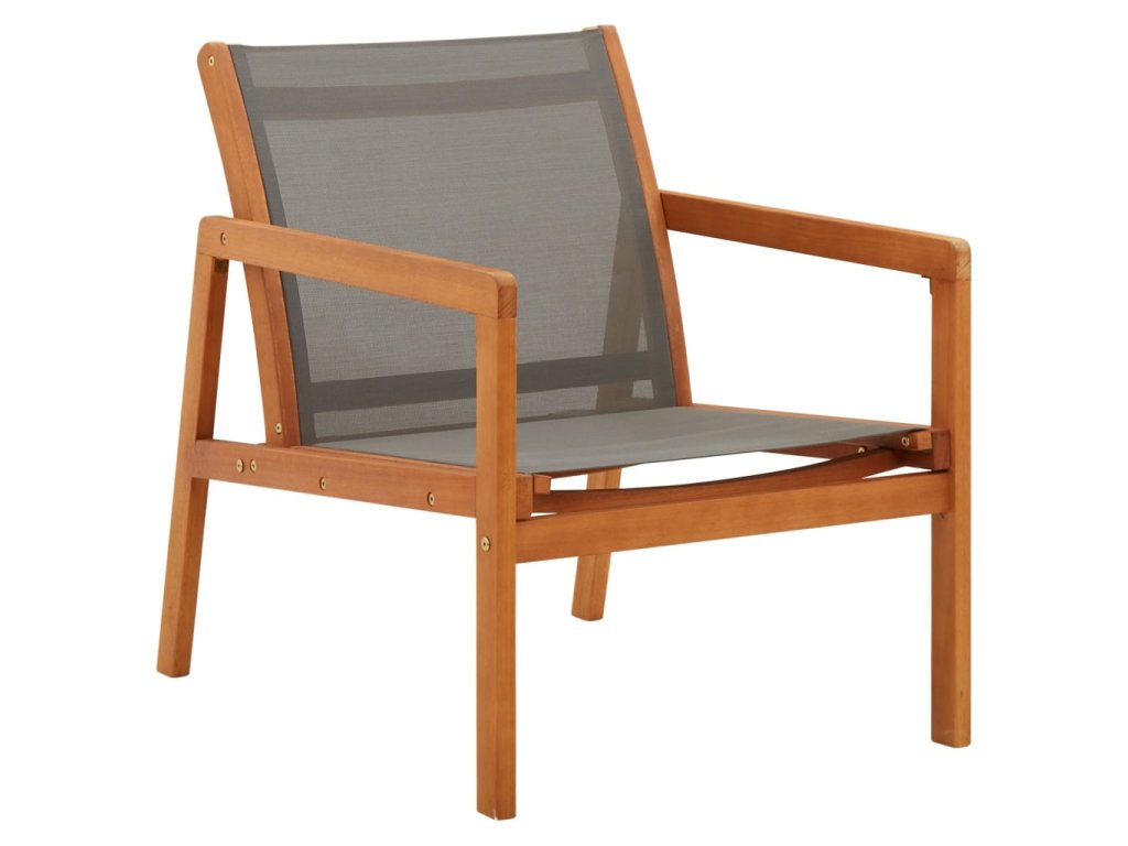 Táto záhradná stolička je vyrobená z eukalyptového masívu s prírodným olejovým náterom, ktorý je odolný voči poveternostným vplyvom a veľmi trvácny. Je veľmi vhodná na vonkajšie použitie. Táto stolička je vyrobená z pevnej a priedušnej textilénovej tkaniny, ktorá poskytuje maximálne pohodlie pri vašom oddychu. Ľahko sa čistí a udržuje.