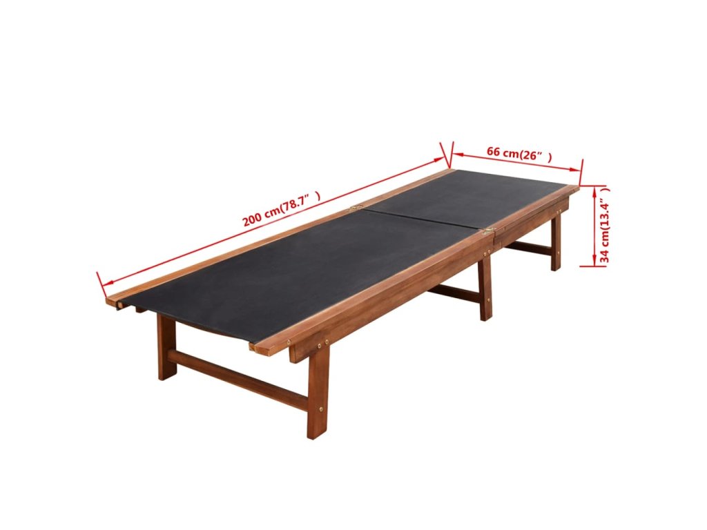 Ležadlá sú vyrobené z vysokokvalitného akáciového dreva so svetlým olejovým náterom. Ide o drevo tropického listnatého stromu, ktoré je odolné voči poveternostným vplyvom a skutočne trvácne. Pevná textilénová látka je vodovzdorná a ľahko sa čistí. Operadlá záhradných ležadiel sa dajú polohovať, aby sa vám na nich ležalo čo najpohodlnejšie.