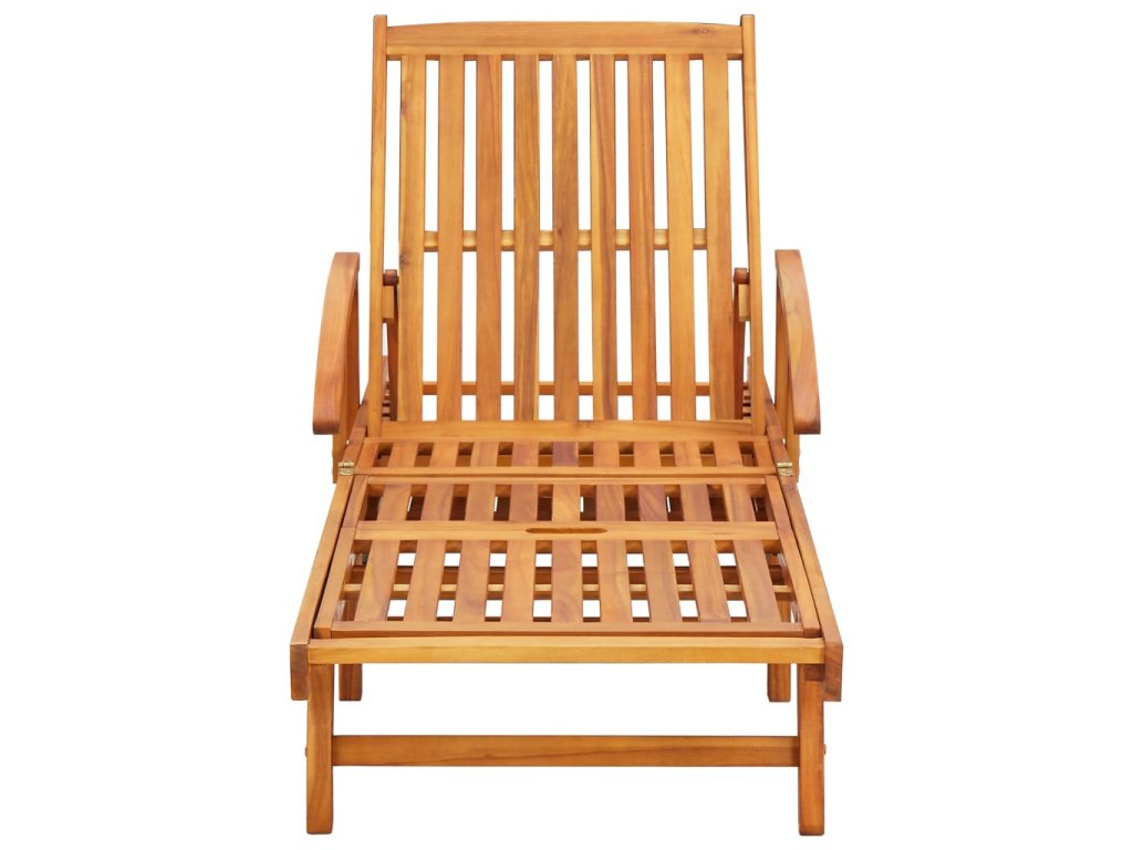 Lehátko je vyrobené z masívneho akáciového dreva a je odolné voči poveternostným vplyvom, trvácne a vhodné na vonkajšie použitie. Je vybavené kolieskami a dá sa s ním ľahko pohybovať. Operadlo a opierka nôh sú nastaviteľné od úplne vzpriameného sedenia až po úplné ploché ležanie, čo vám ponúka maximálne pohodlie. Ležadlo a stôl sa dajú zložiť, keď sa nepoužívajú. Pribalený vankúš je viac ako praktický doplnok; má aj dekoratívnu funkciu.