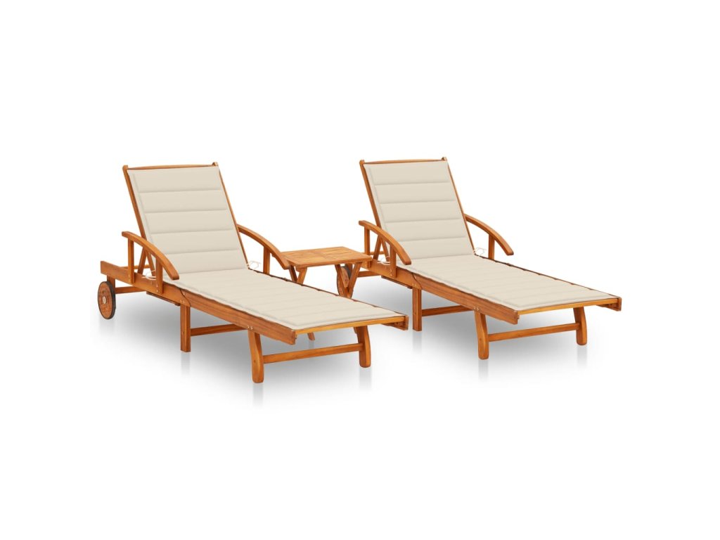 Táto sada drevených záhradných ležadiel so stolíkom stelesňuje kombináciu štýlu a funkčnosti. Do vašej záhrady, na terasu, k bazénu či do iných vonkajších priestorov vnesie rustikálnu atmosféru.