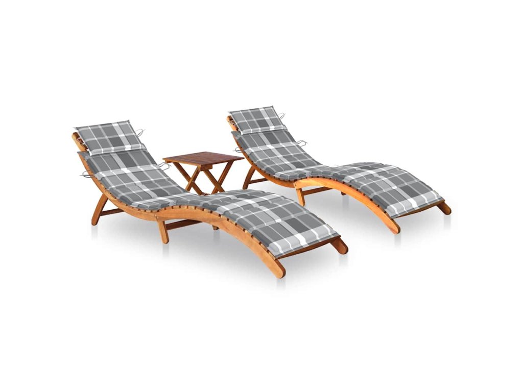 Táto sada 2 drevených lehátok so stolom vám kedykoľvek poskytne pohodlné miesto na oddychovanie v záhrade či na terase. Jedinečná drevená konštrukcia pôsobí pohodlne a vyžaruje z nej prírodná atmosféra.