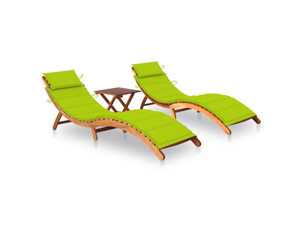 Táto sada 2 drevených lehátok so stolom vám kedykoľvek poskytne pohodlné miesto na oddychovanie v záhrade či na terase. Jedinečná drevená konštrukcia pôsobí pohodlne a vyžaruje z nej prírodná atmosféra.