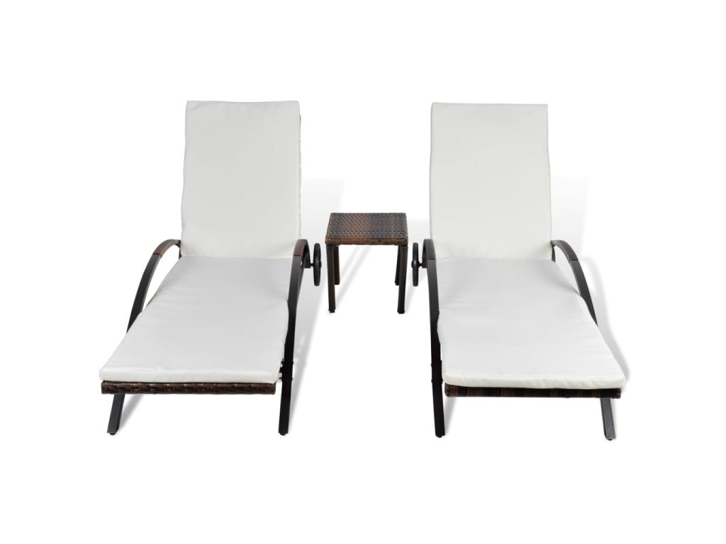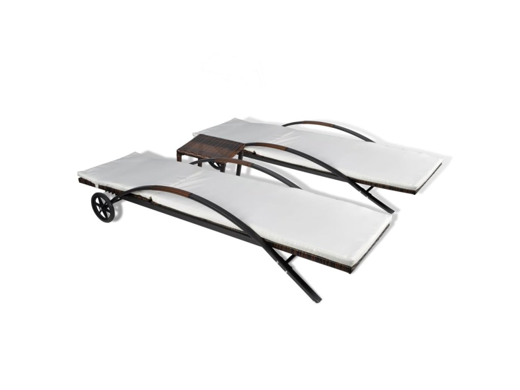 Súprava ležadiel je vyrobená z PE ratanu, ktorý je vodovzdorný a odolný voči poveternostným vplyvom, a tak sa dá ľahko očistiť, je naozaj trvácna a vhodná na každodenné používanie. Záhradné postele a stolík majú robustný oceľový rám s práškovou povrchovou úpravou, vďaka čomu sú skutočne stabilné a trvácne. Operadlá sa dajú sklopiť, takže si vždy nájdete tú najpohodlnejšiu polohu. Hrubé, odnímateľné podložky poskytujú optimálne pohodlie pri sedení a ležaní. Poťahy podložiek sa dajú jednoducho zvliecť a oprať. Vďaka kolieskam sa záhradné postele dajú bez problémov premiestniť. Na robustný štvorcový stolík si môžete položiť nápoje, telefóny, knihy či iné drobnosti, ktoré chcete mať poruke.