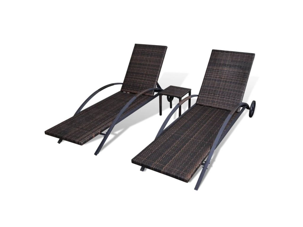 Táto súprava ratanových záhradných ležadiel, ktorá pozostáva z dvoch ležadiel a jedného stolíka, stelesňuje kombináciu štýlu a funkčnosti a stane sa stredobodom vašej záhrady či terasy.