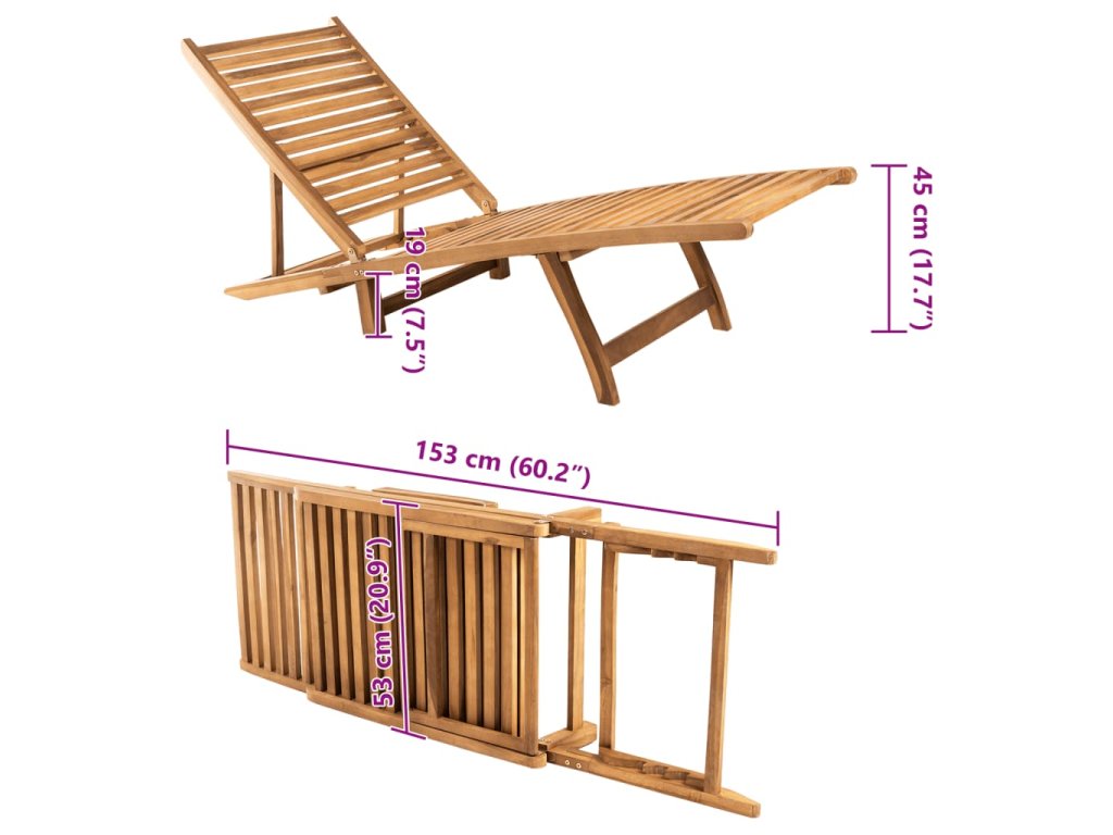 Tento kus teakového nábytku bol vyrobený z mimoriadne trvácneho tvrdého teakového dreva, ktoré bolo umelo vysušené v sušiarni a jeho povrch bol následne jemne obrúsený, aby získal hladký vzhľad. Tíkové drevo sa vyznačuje výnimočnou pevnosťou a odolnosťou voči poveternostným vplyvom, a tak predstavuje jeden z najvhodnejších materiálov na výrobu záhradného nábytku spomedzi všetkých ostatných druhov dreva. Ak si chcete zaobstarať záhradný nábytok, ktorý vám bude slúžiť dlhé roky, tíkové drevo bude pre vás ako stvorené. Ležadlo sa dá nastavovať, takže si nájdete vždy vhodnú polohu. Okrem toho sa dá ležadlo zložiť, aby sa ušetrilo miesto.