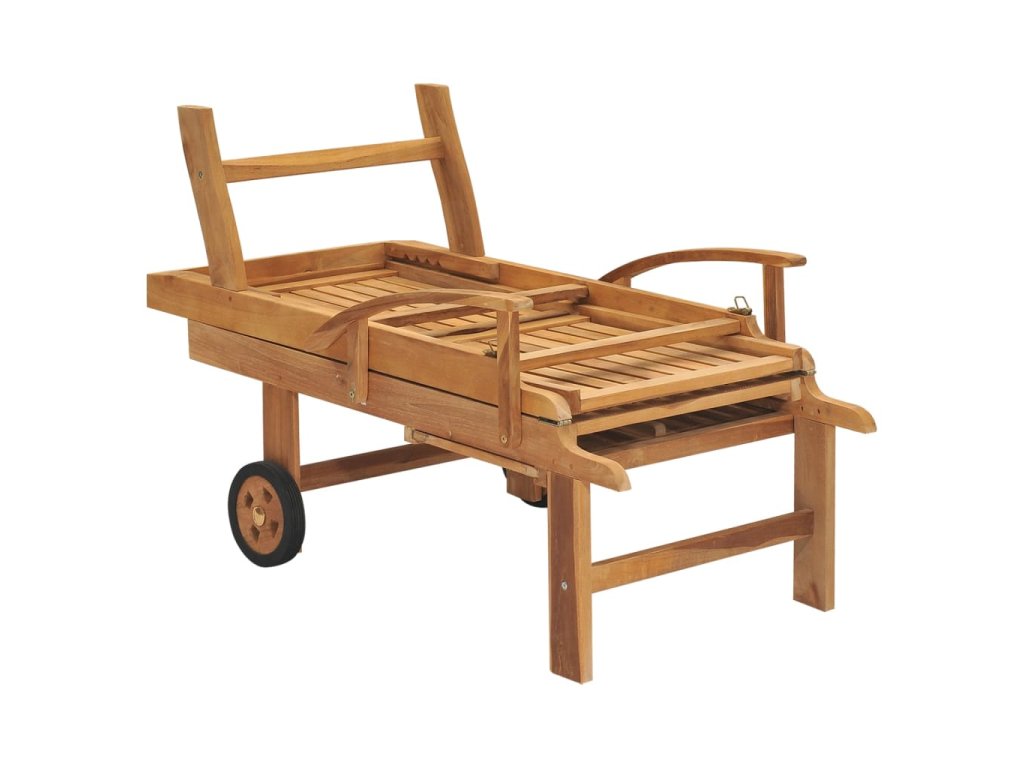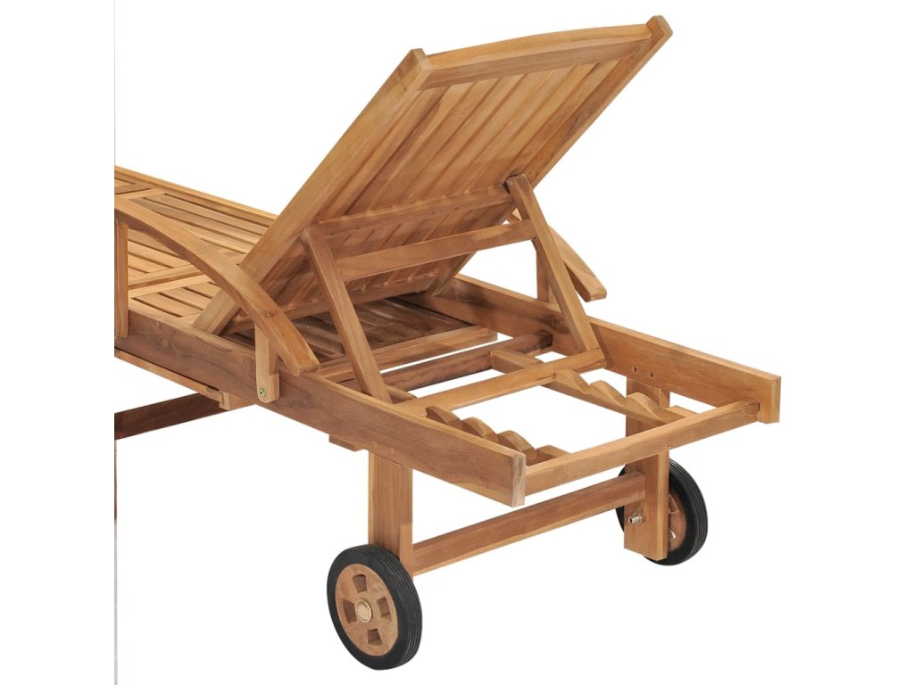 Ležadlo je vyrobené z mimoriadne trvácneho tvrdého teakového dreva, ktoré bolo umelo vysušené v sušiarni a jeho povrch bol následne jemne obrúsený, aby získal hladký vzhľad. Teakové drevo sa vyznačuje výnimočnou pevnosťou a odolnosťou voči poveternostným vplyvom, a tak predstavuje jeden z najvhodnejších materiálov na výrobu záhradného nábytku spomedzi všetkých ostatných druhov dreva. Ak si chcete zaobstarať záhradný nábytok, ktorý vám bude slúžiť dlhé roky, teakové drevo je pre vás ako stvorené. Lehátko je vybavené 2 kolieskami a dá sa ľahko premiestňovať.