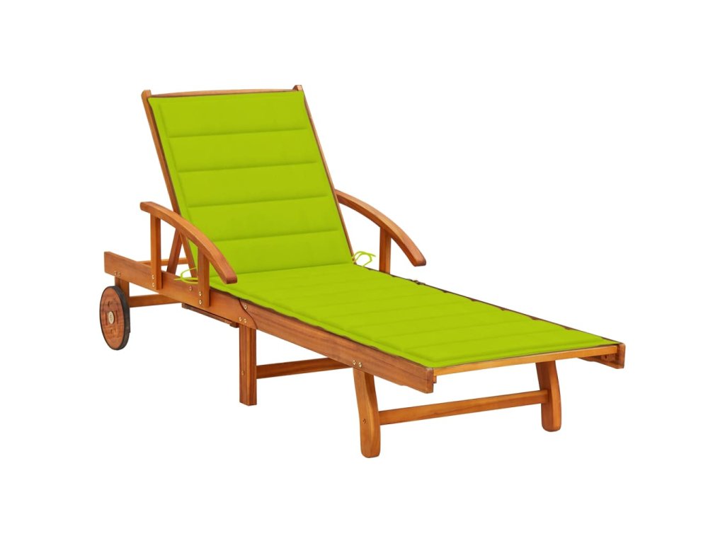 Záhradné ležadlo je vyrobené z akáciového masívu, vďaka čomu je pevné a stabilné. Záhradné ležadlo sa dá bez problémov premiestňovať vďaka 2 kolieskam. Operadlo a opierka na nohy sú nastaviteľné a drevené ležadlo si môžete uzamknúť v požadovanej polohe. Na vysúvací stolík si môžete odložiť telefón, slnečné okuliare, nápoje a iné drobnosti. Podložka vám poskytne väčšie pohodlie pri oddychovaní. Každá podložka má dva páry šnúrok, pomocou ktorých ju pevne pripevníte k ležadlu.