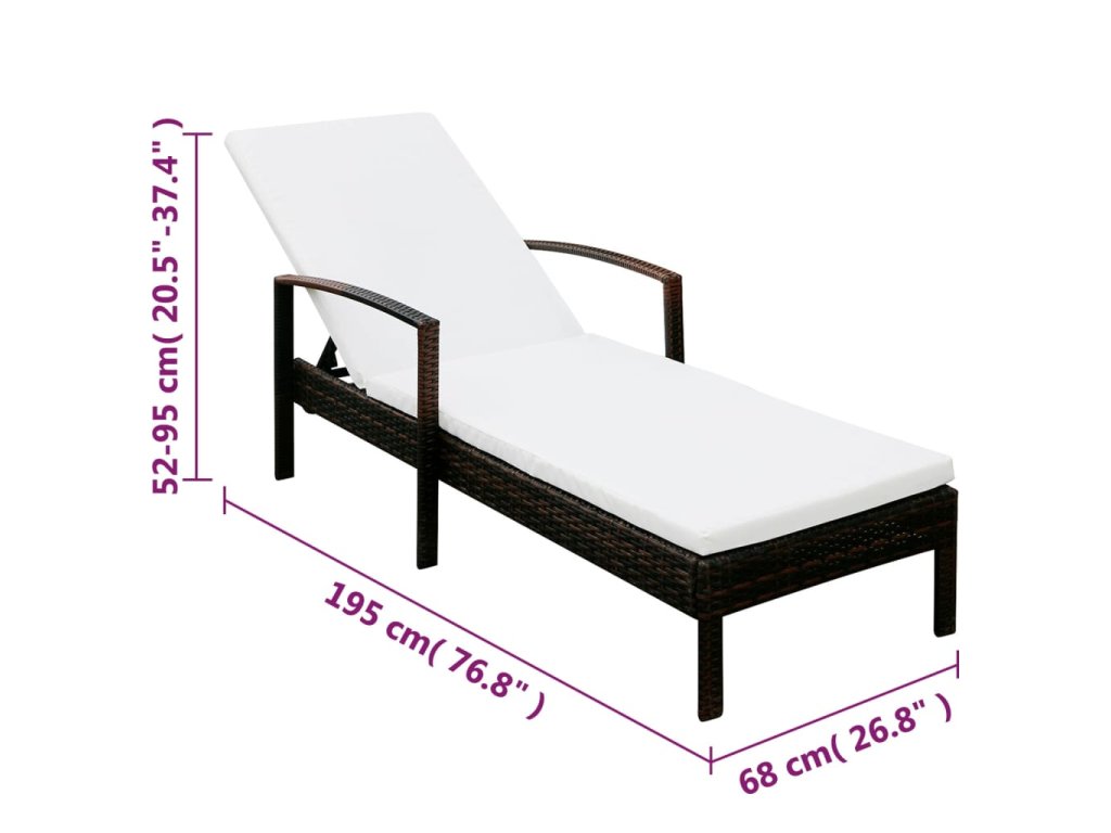 Toto trvácne ležadlo sa dá ľahko očistiť a je vyrobené z PE ratanu, ktorý je odolný voči poveternostným vplyvom. Operadlo sa dá sklopiť do štyroch úrovní, takže si pri sedení a ležaní vždy nájdete tú najpohodlnejšiu polohu, pretože ležadlo môžete využívať aj ako sklápacie kreslo či posteľ. Súčasťou balenia je aj 5 cm hrubá a veľmi mäkká podložka. Toto štýlové ležadlo predstavuje skvelý doplnok do vašich vonkajších priestorov!