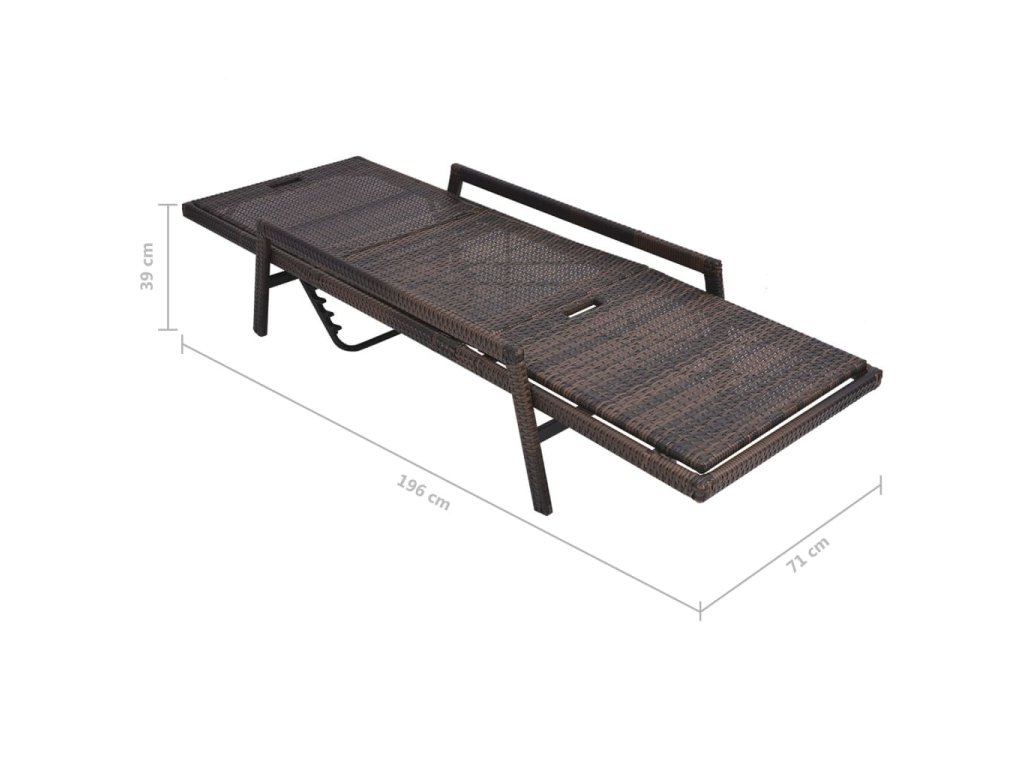 Ležadlo je vyrobené z PE ratanu, ktorý je vodovzdorný a odolný voči poveternostným vplyvom, a tak sa dá ľahko očistiť, je naozaj trvácne a vhodné na každodenné použitie. Ležadlo má robustný oceľový rám s práškovou povrchovou úpravou a opierky na ruky v tvare písmena U, vďaka čomu je skutočne pevné a odolné. Operadlo a podnožka sa dajú sklopiť, takže si vždy nájdete tú najpohodlnejšiu polohu. Hrubá odnímateľná podložka zabezpečuje komfort pri sedení a ležaní. Poťah podložky sa dá jednoducho zvliecť a oprať.