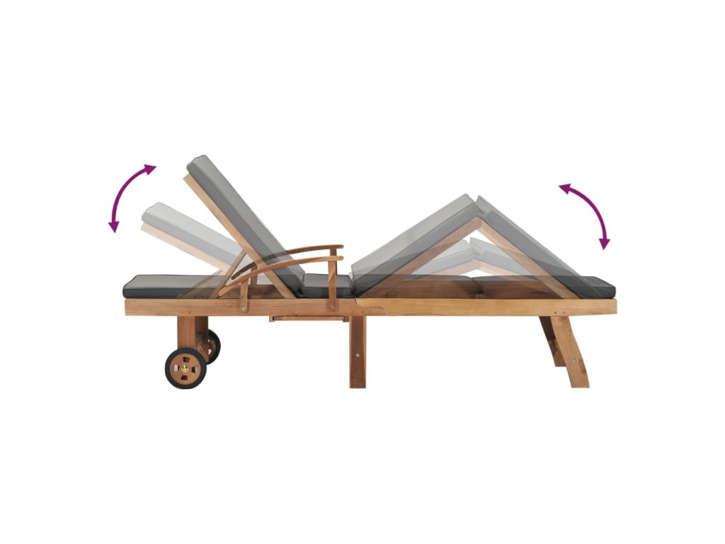 Krásna povrchová úprava drevu dodáva teplý farebný odtieň. Záhradné ležadlo má 2 kolieska, takže sa dá ľahko presúvať. Vďaka podložke, ktorá je súčasťou balenia, sa vám na ňom bude ležať naozaj pohodlne. Ležadlo je vybavené aj praktickým vysúvacím stolíkom, na ktorý si môžete odložiť telefón, okuliare, nápoje či iné drobnosti, ktoré chcete mať poruke. Operadlo sa dá nastaviť do 3 polôh, od zvislej polohy až po úplne vodorovnú. Nastaviteľná je aj opierka na nohy.