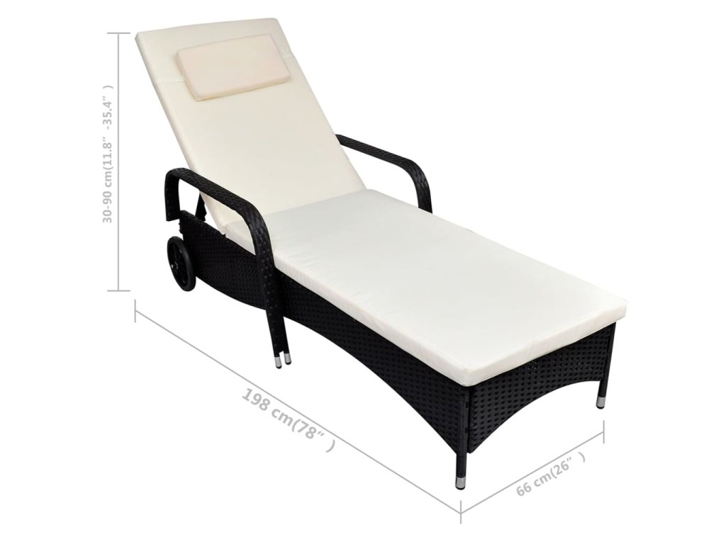 Krémové podložky, ktoré sa dokonale hodia k ležadlu, sú vyrobené z vodoodpudivého polyesteru. Poťahy na zips sa dajú zvliecť a oprať pri 30 stupňoch. Ležadlo má nastaviteľné operadlo, takže sa dá polohovať do 4 rôznych polôh. Okrem toho je vybavené aj 4 kolieskami v oblasti opierky hlavy, aby sa dalo jednoducho premiestniť.